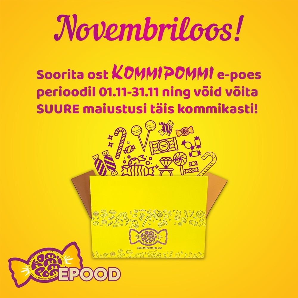 Tellisin KOMMIPOMM e-poest kingikomplekti ja sain paki kiiresti kätte. Kommid olid hoolikalt pakendatud ning sobisid hästi kinkimiseks.