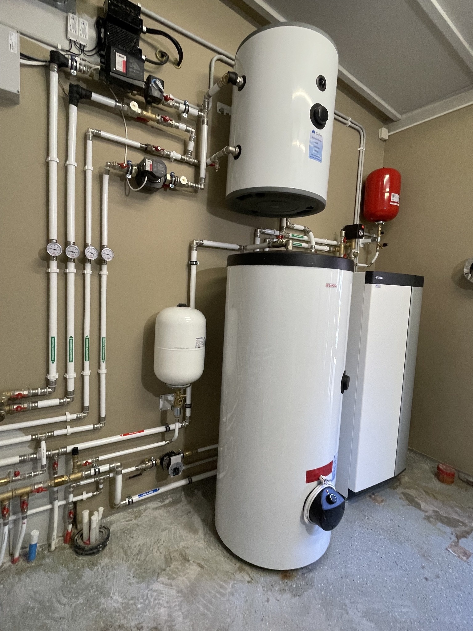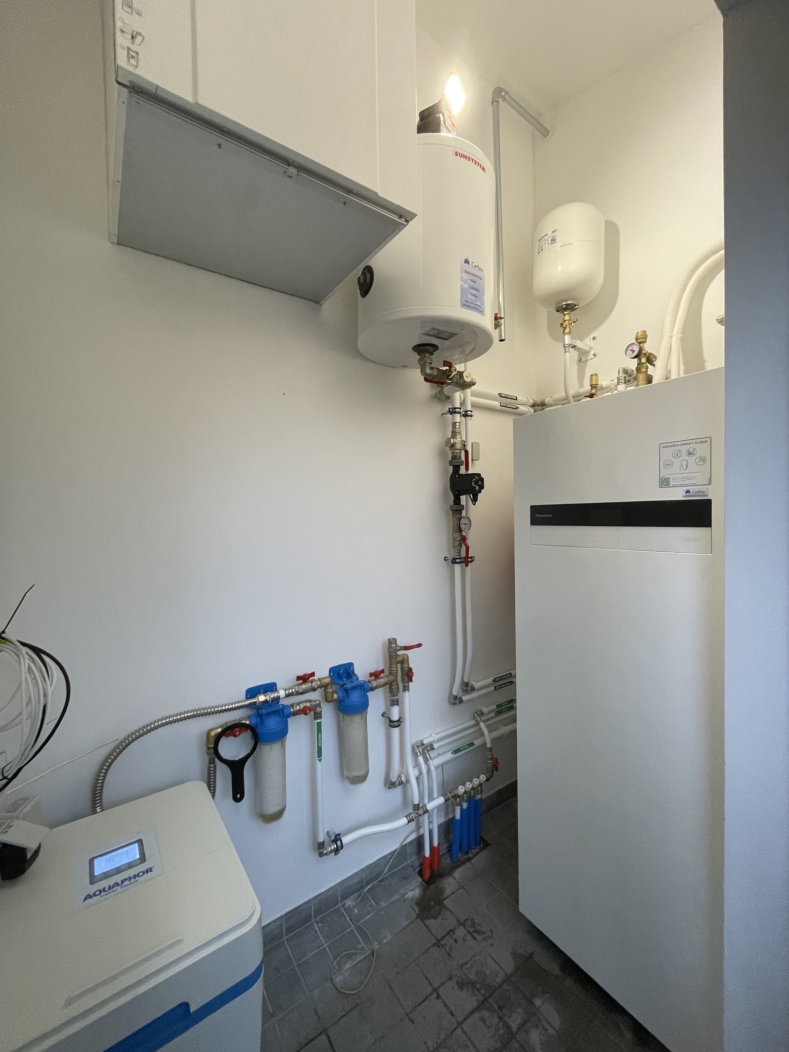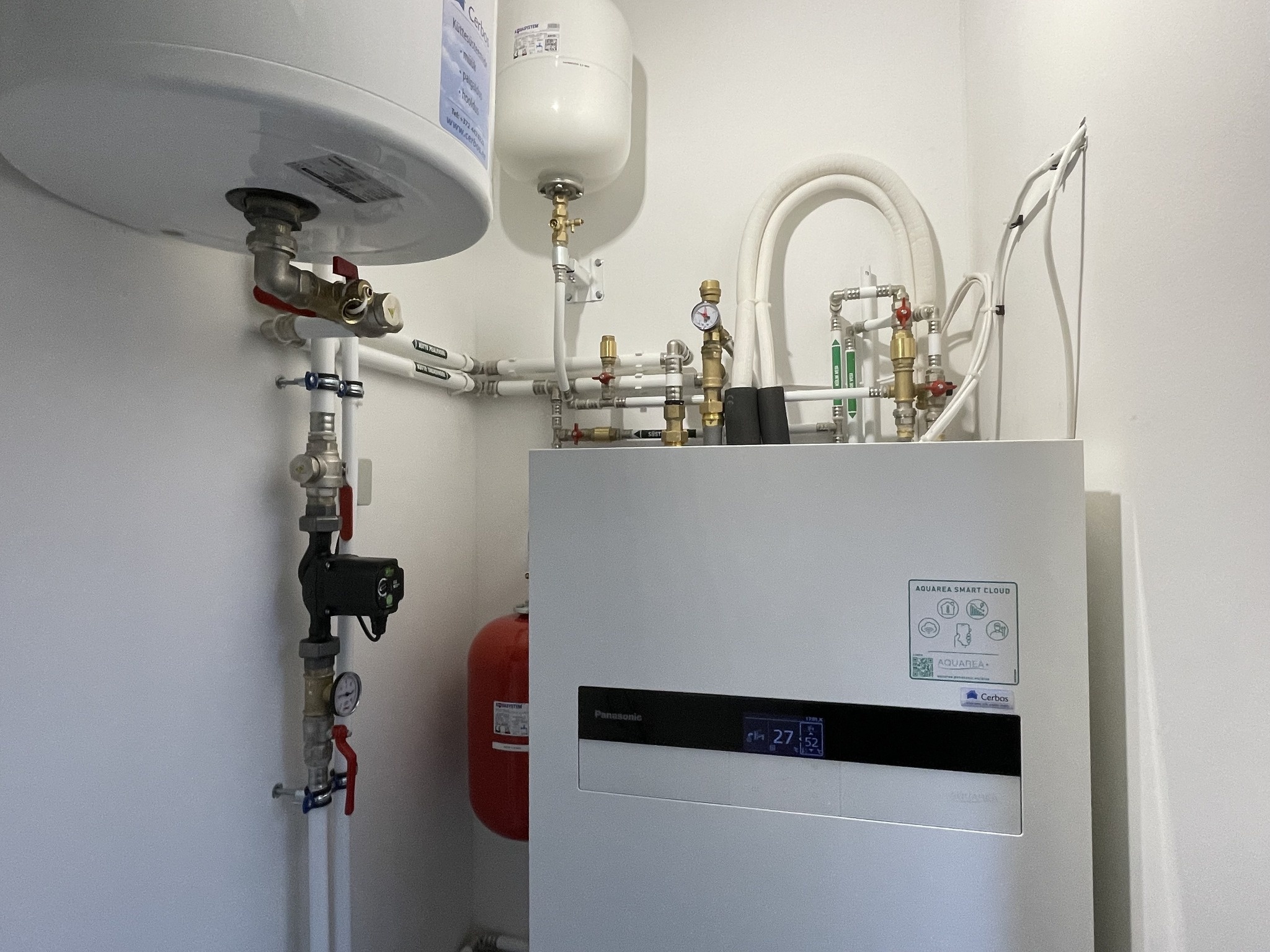 Valisin õhk-vesi soojuspumba; paigalduse ajal kohandati seade olemasoleva küttega ja lisatarvikud aitasid ühenduse lihtsustada.