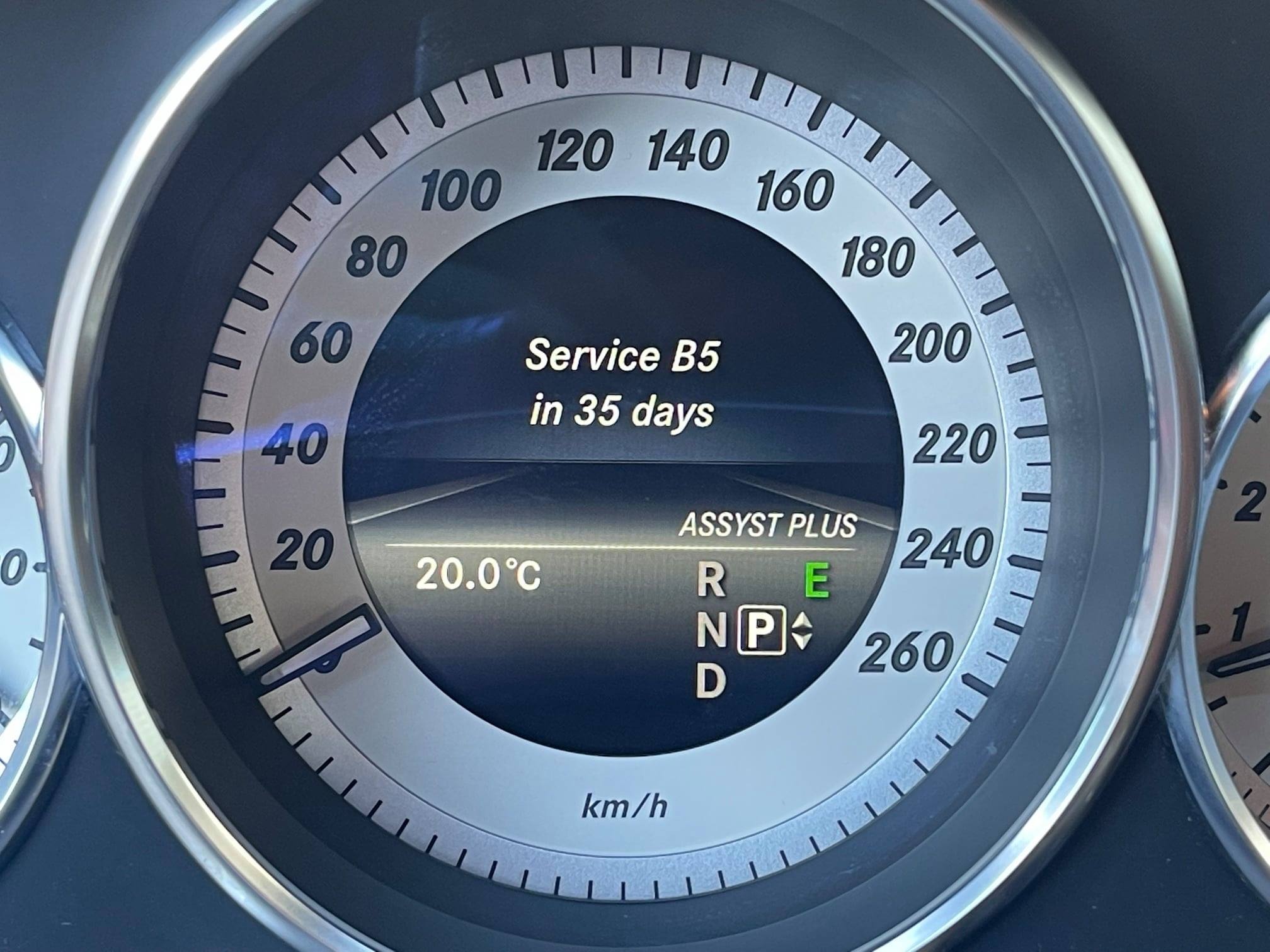 Viisin oma E‑klassi ASSYST‑hooldusele Tallinna esindusse. Tööd tehti vastavalt tehase nõuetele ja hooldus kanti korrektselt teenindusregistrisse.