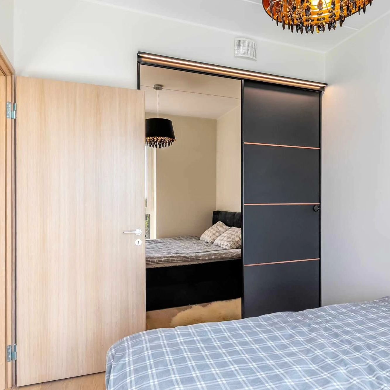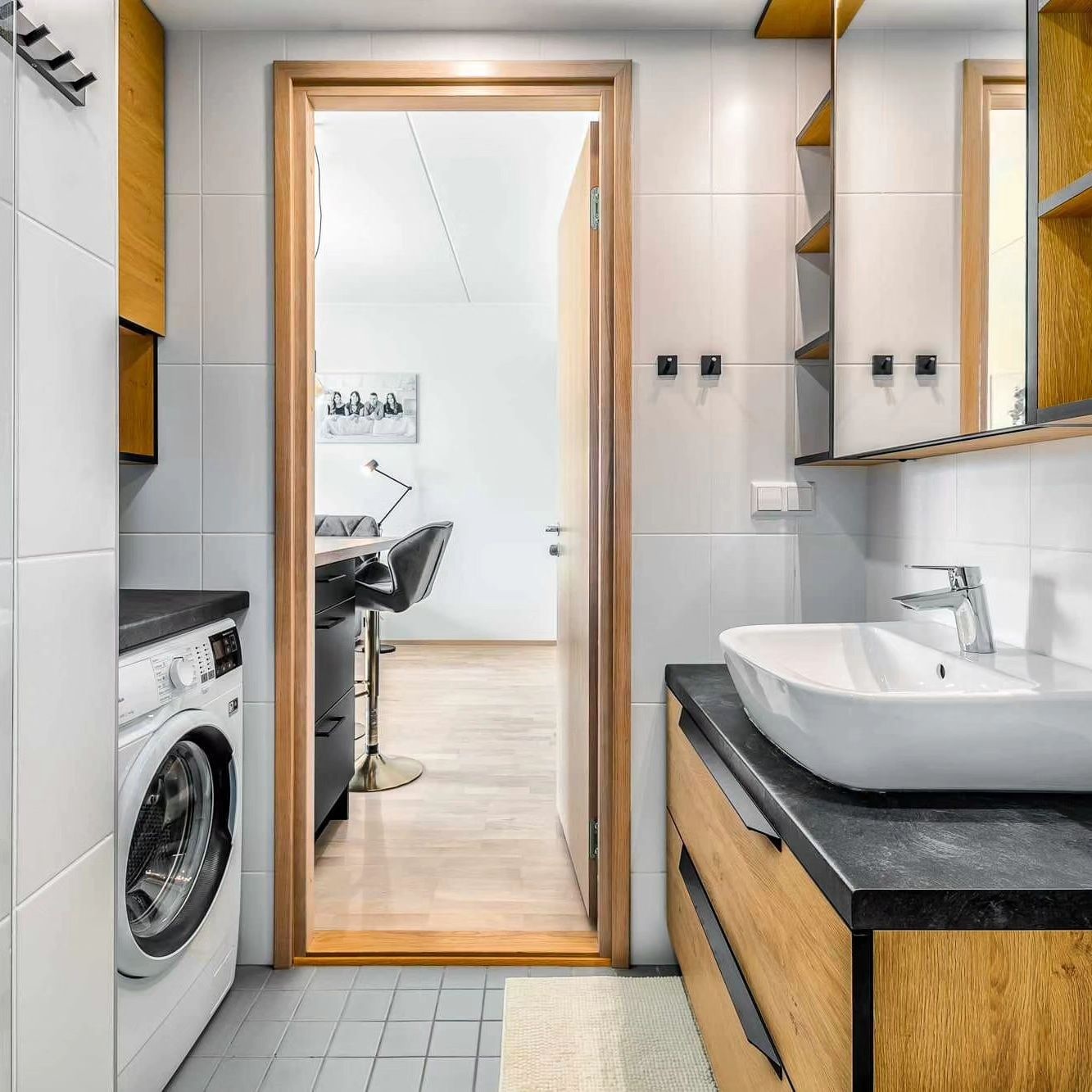 Tellisime garderoobi täpsete mõõtude järgi. Riiulilahendused maksimeerivad hoiuruumi ja paigaldus oli korralik.