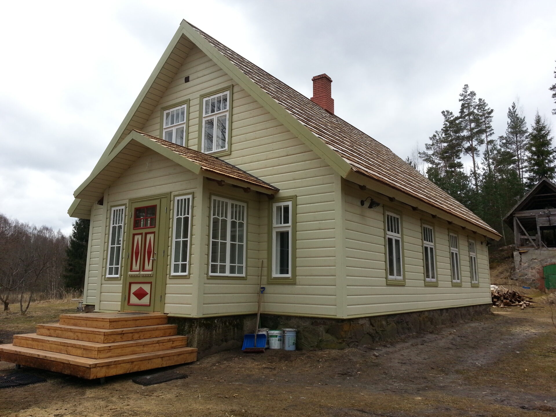 Puitlaastkatuse paigaldus tehti kohalike materjalidega ja asjatundlike paigaldajatega. Katus sobib nüüd hästi taastatava hoone välisilme ja tundub vastupidav.