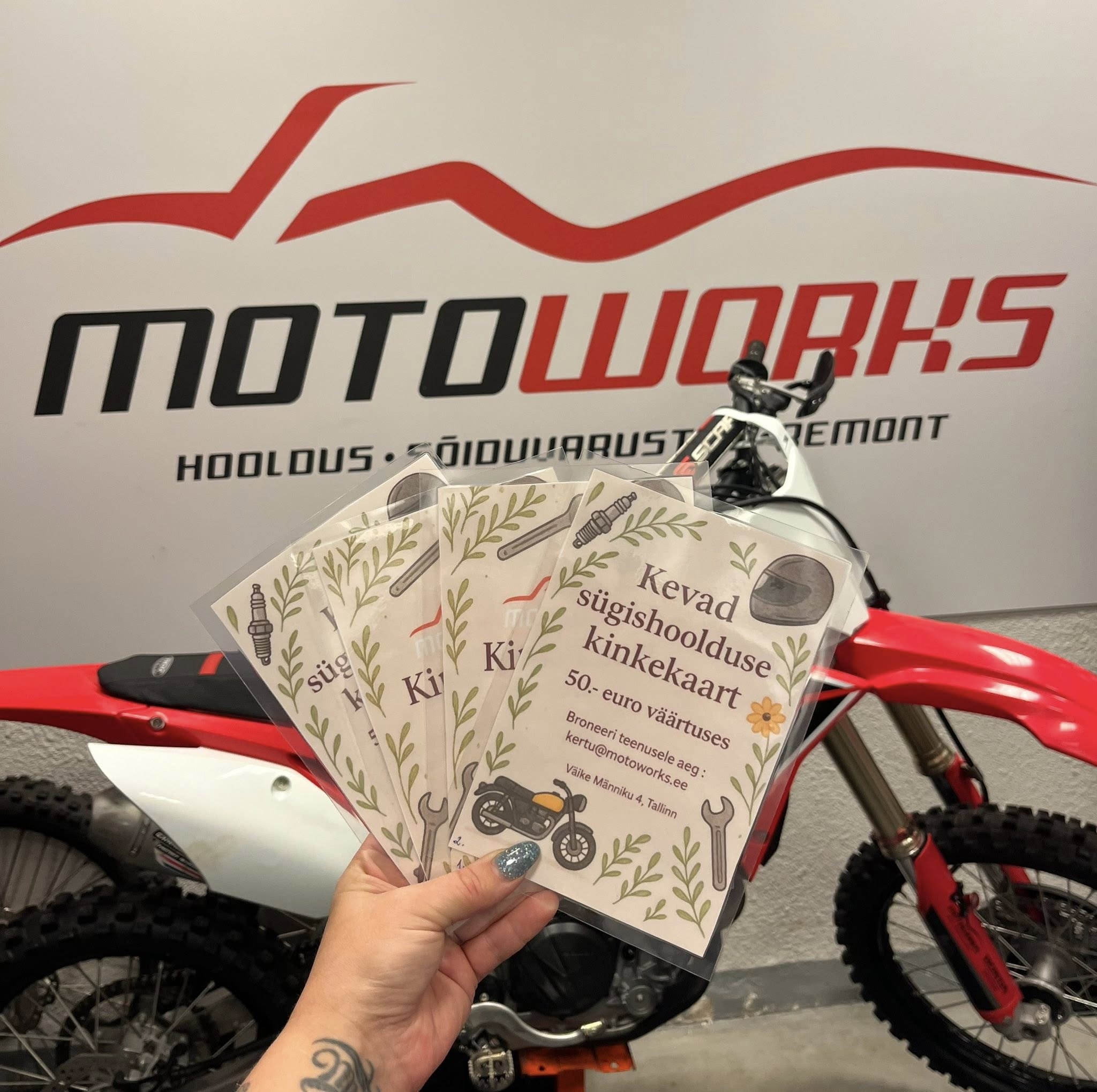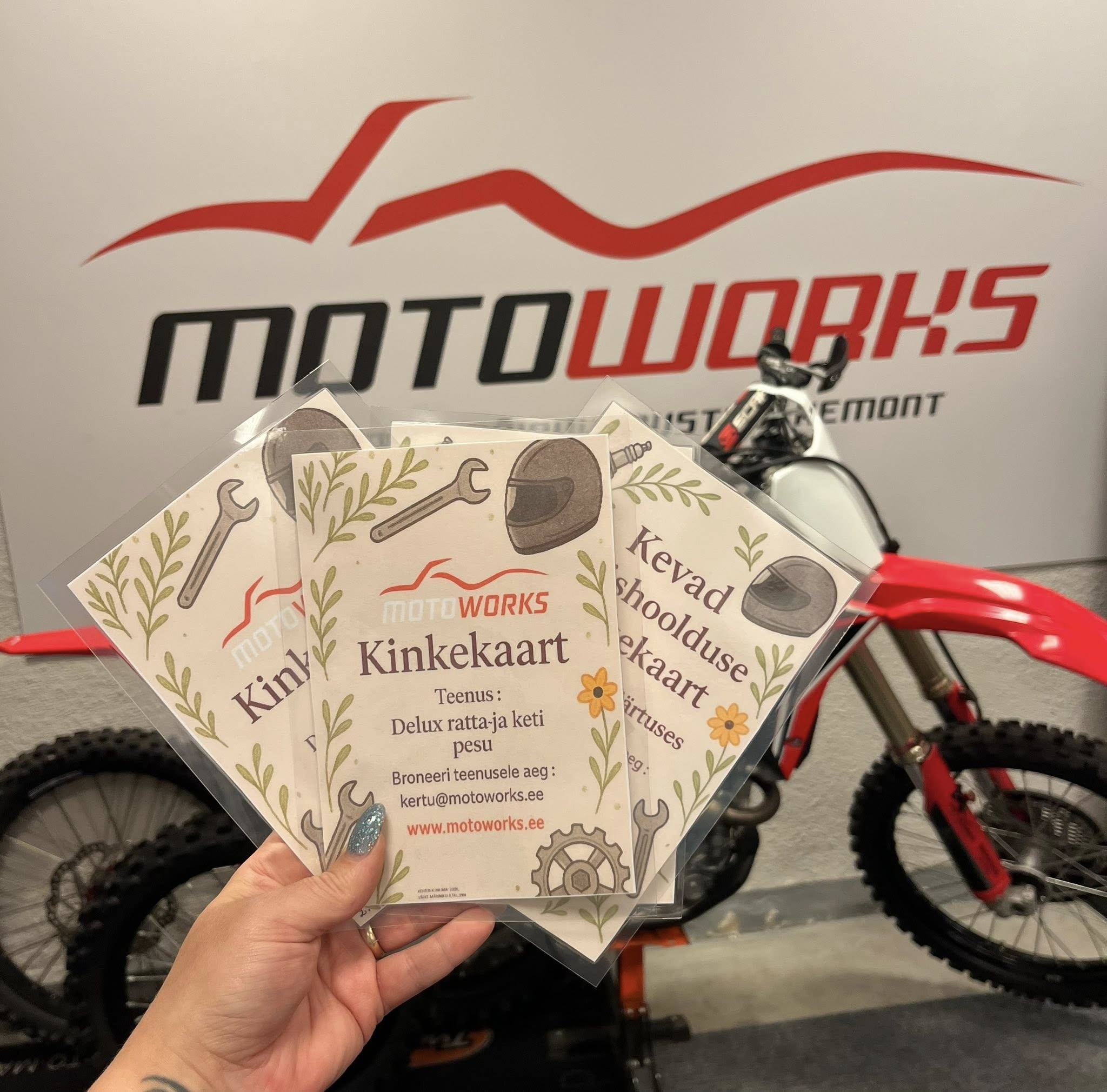 Pakkuja rollina ühendame me töötoa teenused, laia varuosade ja tarvikute valiku e-poes, hooajalise hoiustamisega seotud põhihoolduse ning rentide ja juhitud sõitude kaudu võimaluse proovida ja kogeda eri sõiduvorme. Samuti toetame motokrossi ning enduro huvilisi klubitegevuse ja treeningutega, et sõitjad leiaksid nii tehnilise abi kui ka harrastus- ja võistlusvõimalusi.