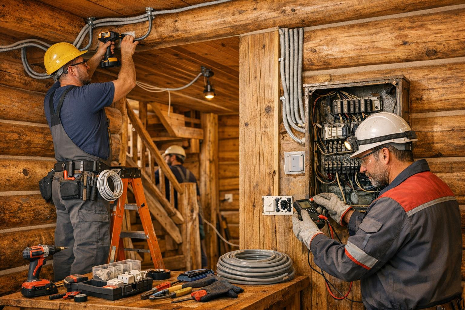 Meie meeskond omab ulatuslikke teadmisi ja kogemusi palk- ja puitmajade elektritööde valdkonnas. Oleme läbinud põhjaliku koolituse ning omame spetsiifilisi oskusi ja teadmisi, et tagada teie majas elektrisüsteemide sujuv ja turvaline toimimine.