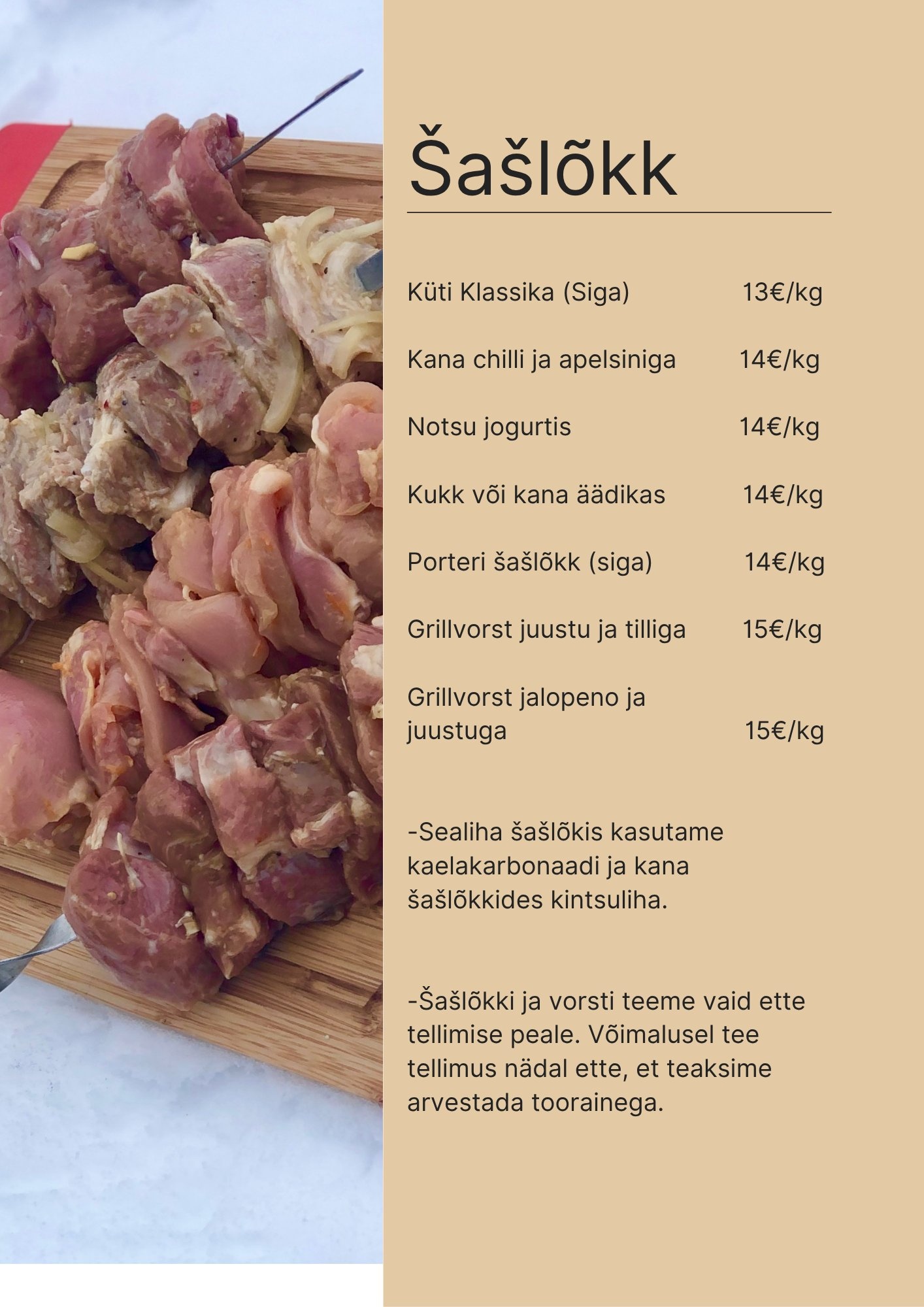 Me valmistame suitsuliha ja seotud tooteid traditsioonilise suitsuahju lähenemisega ning pakume tellimuspõhist cateringut ja koostatud toidukorve, mida on võimalik osta talust, turult või tellida suurematele sündmustele. Samuti teeme hooajalisi eripakkumisi, mis kajastavad kohalikke traditsioone ja hooaja maitseid.