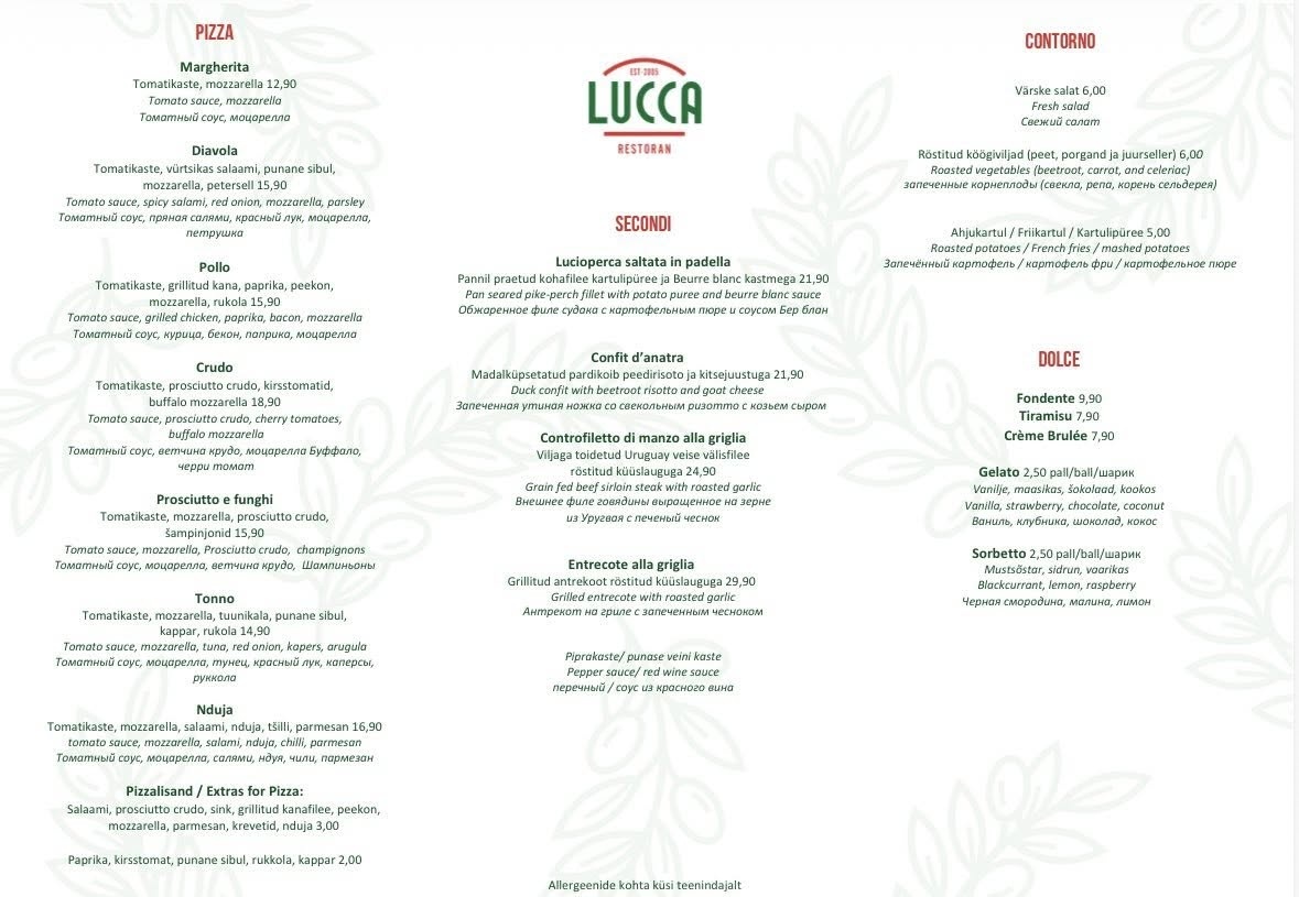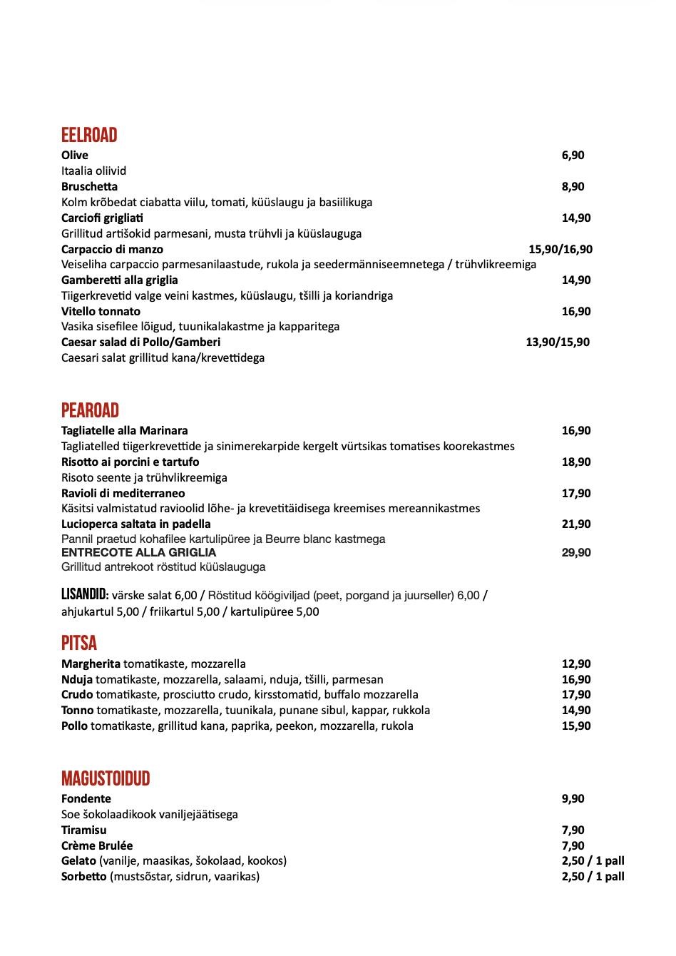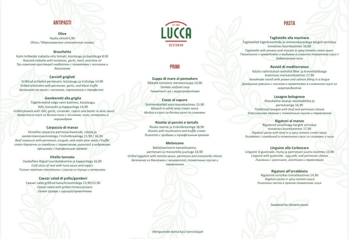 Autentne Itaalia maitse oli tõepoolest tuntav — pastad ja pizzad valmistasid rõõmu tänu värsketele koostisosadele. Teenindus oli soe ja peresõbralik.