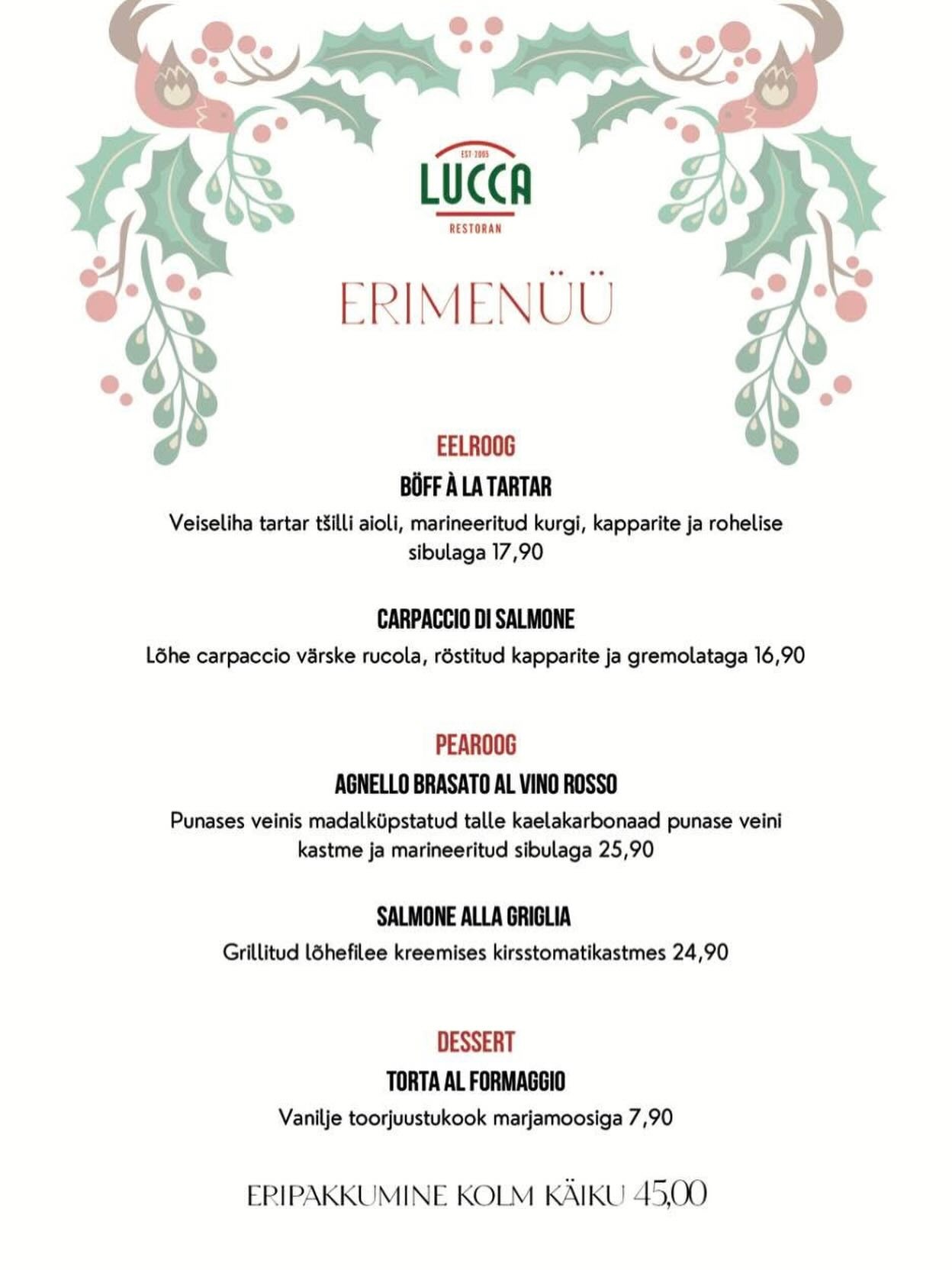 Restoran pakub kohtumispaika, kus klassikaline Itaalia köök kohtub perekesksuse ja praktilisusega: köögile keskendudes loome menüüd, mis toob esile traditsioonilised maitsed, samal ajal kujundame ruume nii, et pered ja sündmused tunneksid end hästi. Perekülastusi toetavad lastetuba ja väliõue mängualad ning eraldi lastele mõeldud menüü, ja reserveerimine on lihtne nii veebis kui telefoni teel, et külastust planeerida ilma segaduseta.