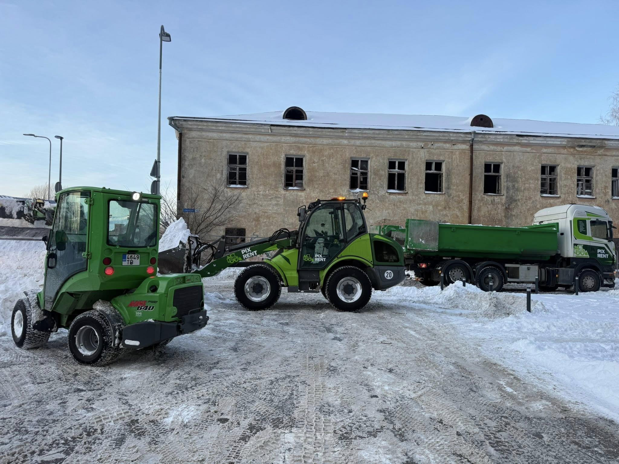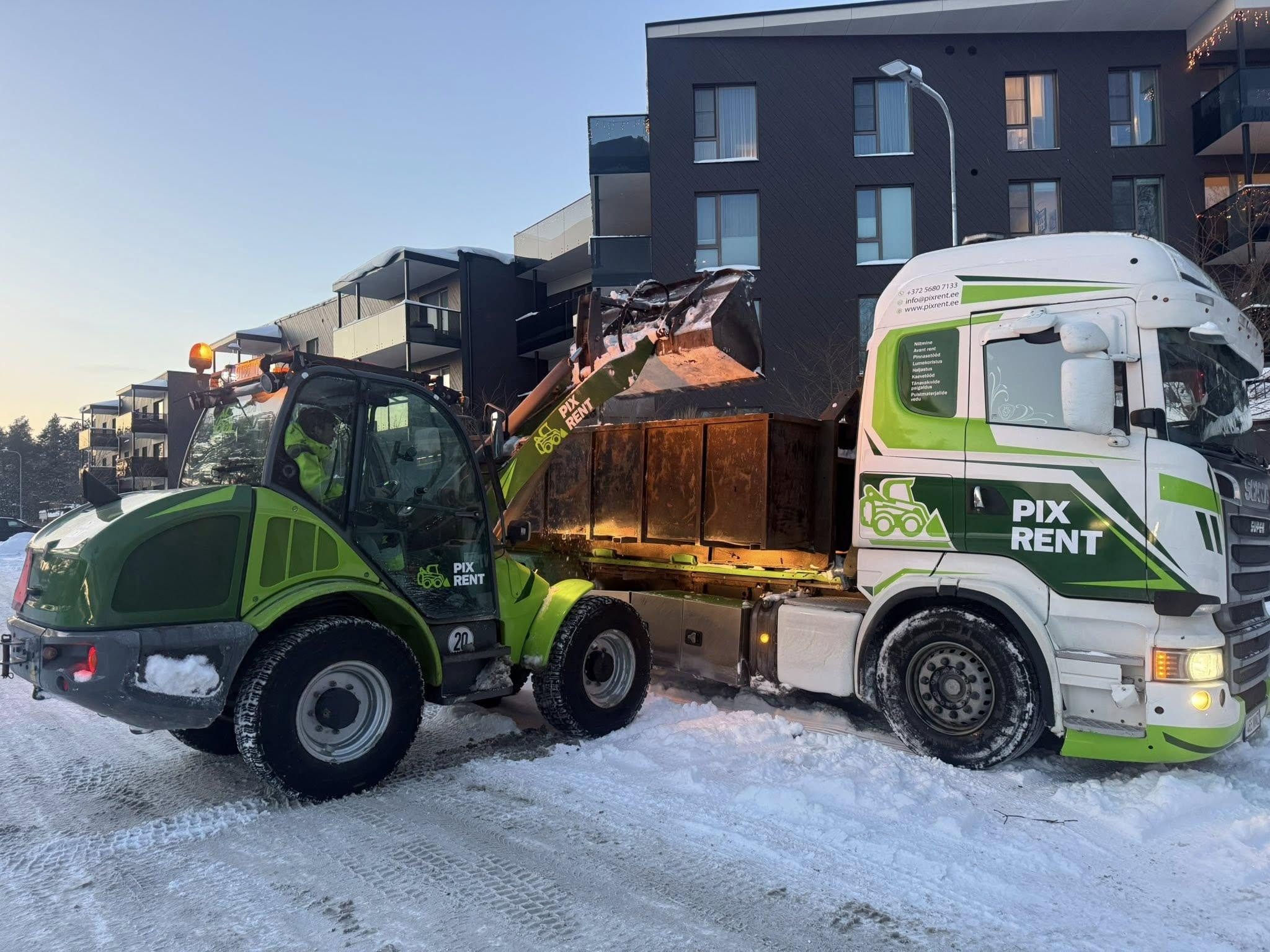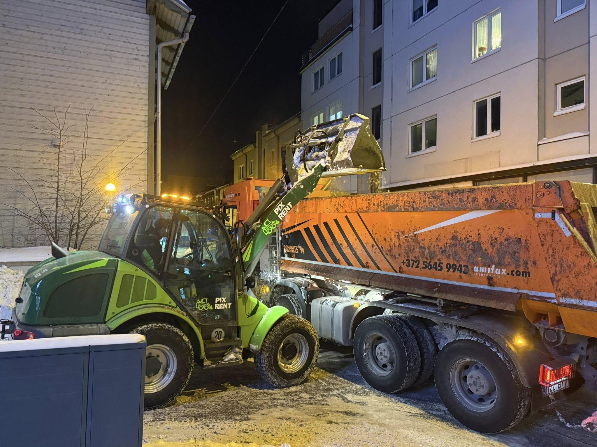Tellisin transpordi ja tööde teostuse väiksele tööplatsile, sealhulgas lumehoolduse ja väikse kaevetöö. Mugav võtmest-võtmeni lahendus — ei pidanud ise haagist ega masinat organiseerima.