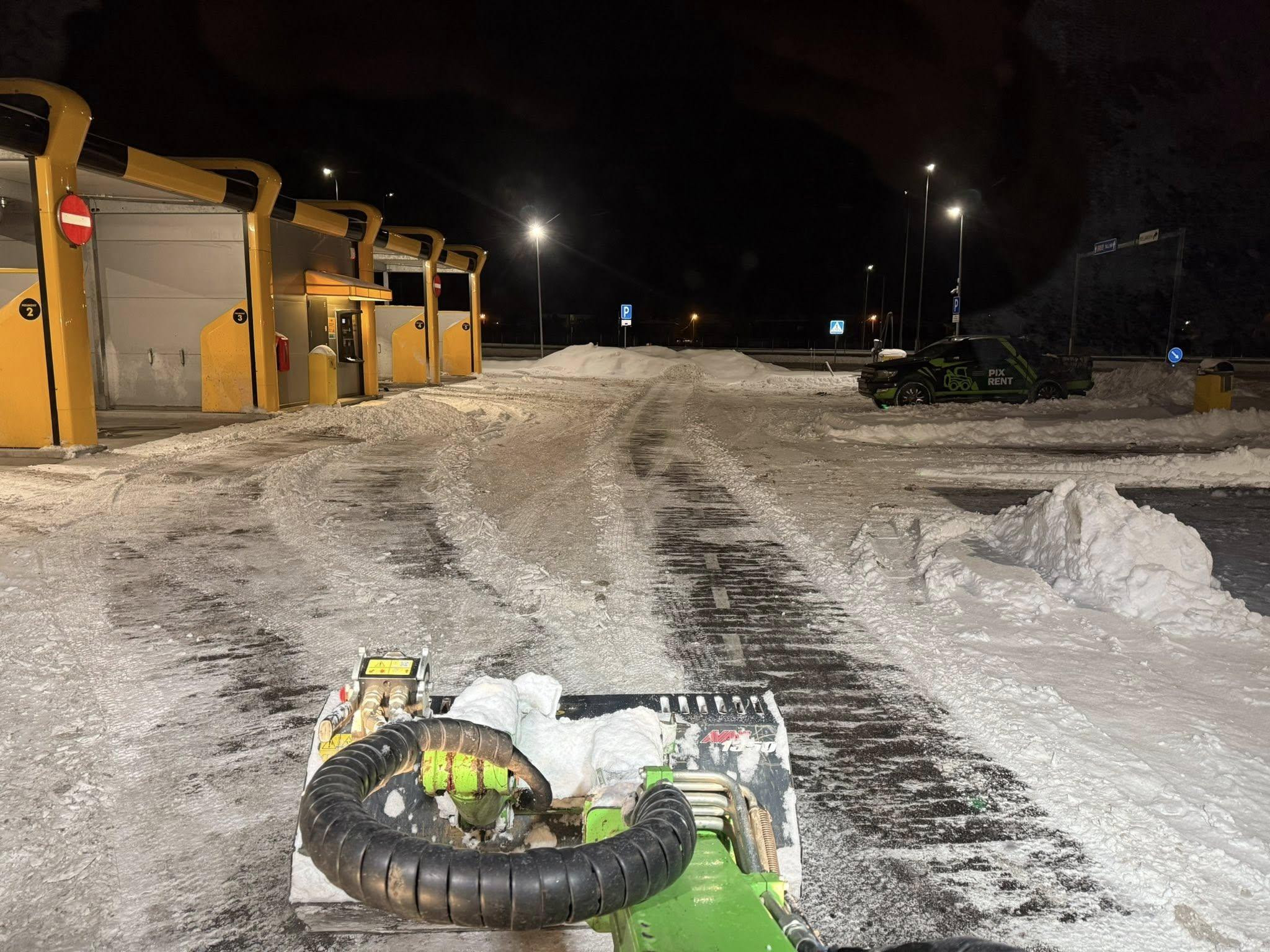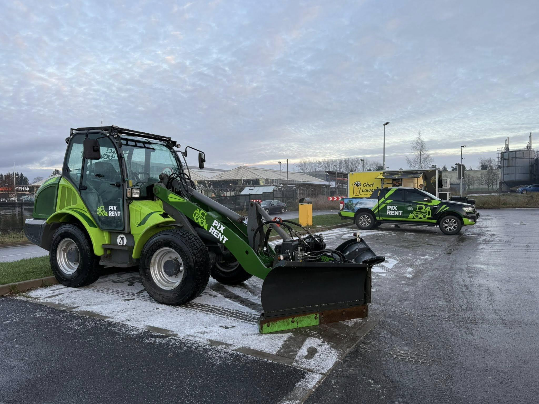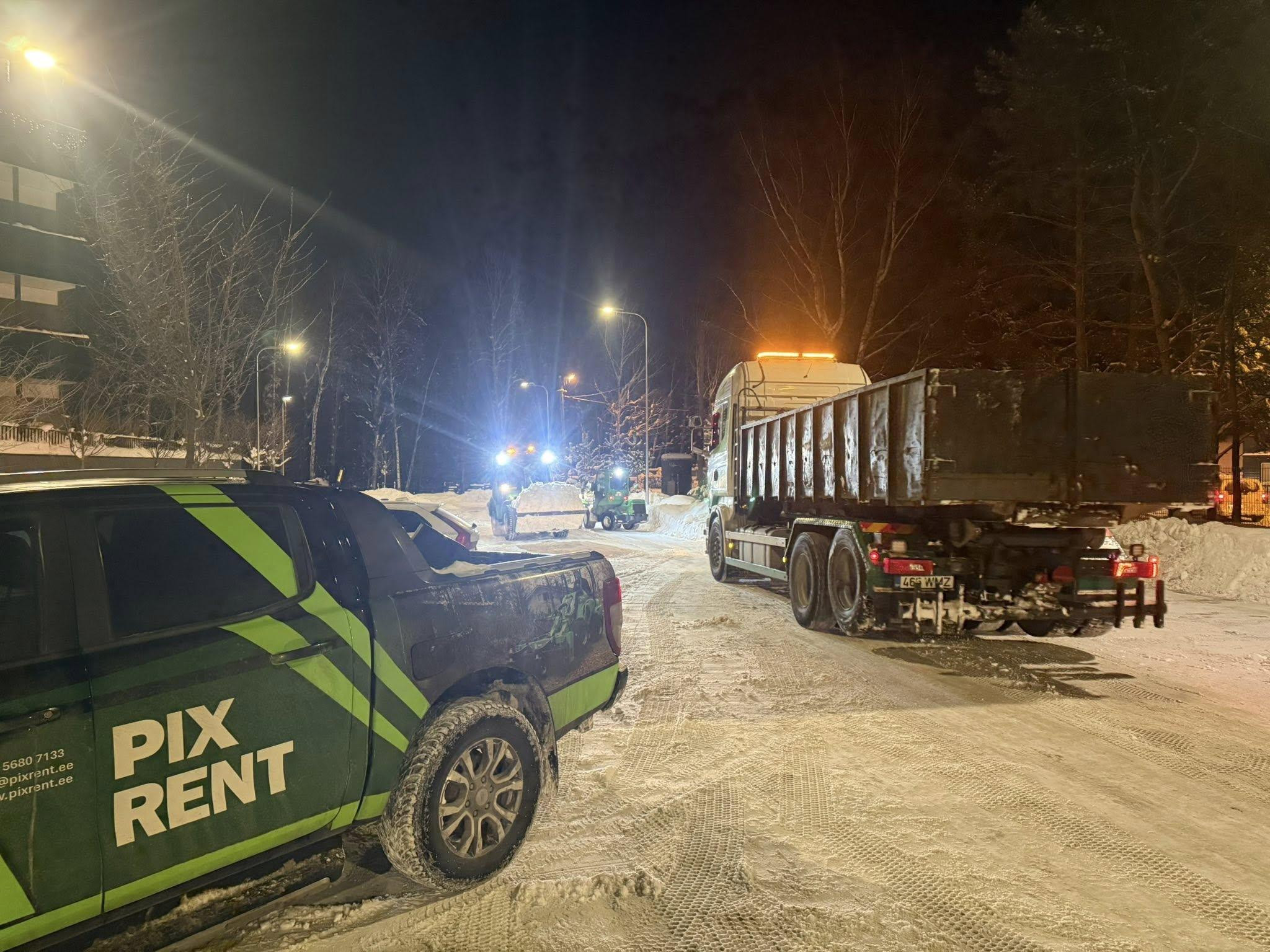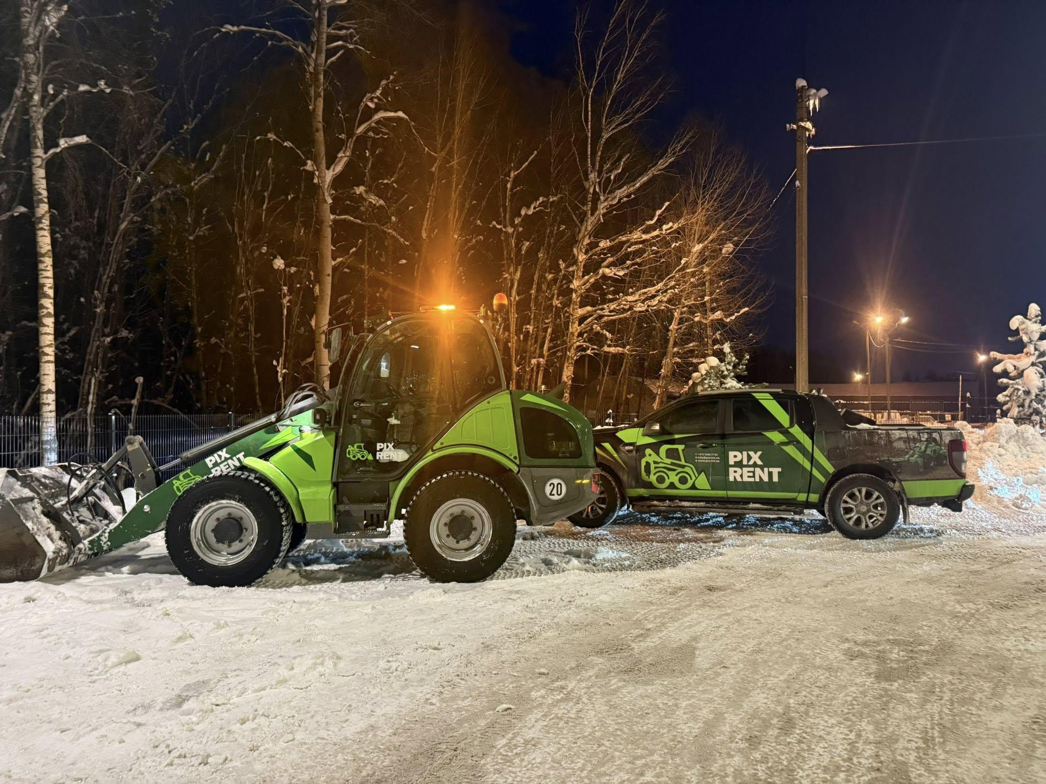 Tellisin transpordi ja tööde teostuse väiksele tööplatsile, sealhulgas lumehoolduse ja väikse kaevetöö. Mugav võtmest-võtmeni lahendus — ei pidanud ise haagist ega masinat organiseerima.