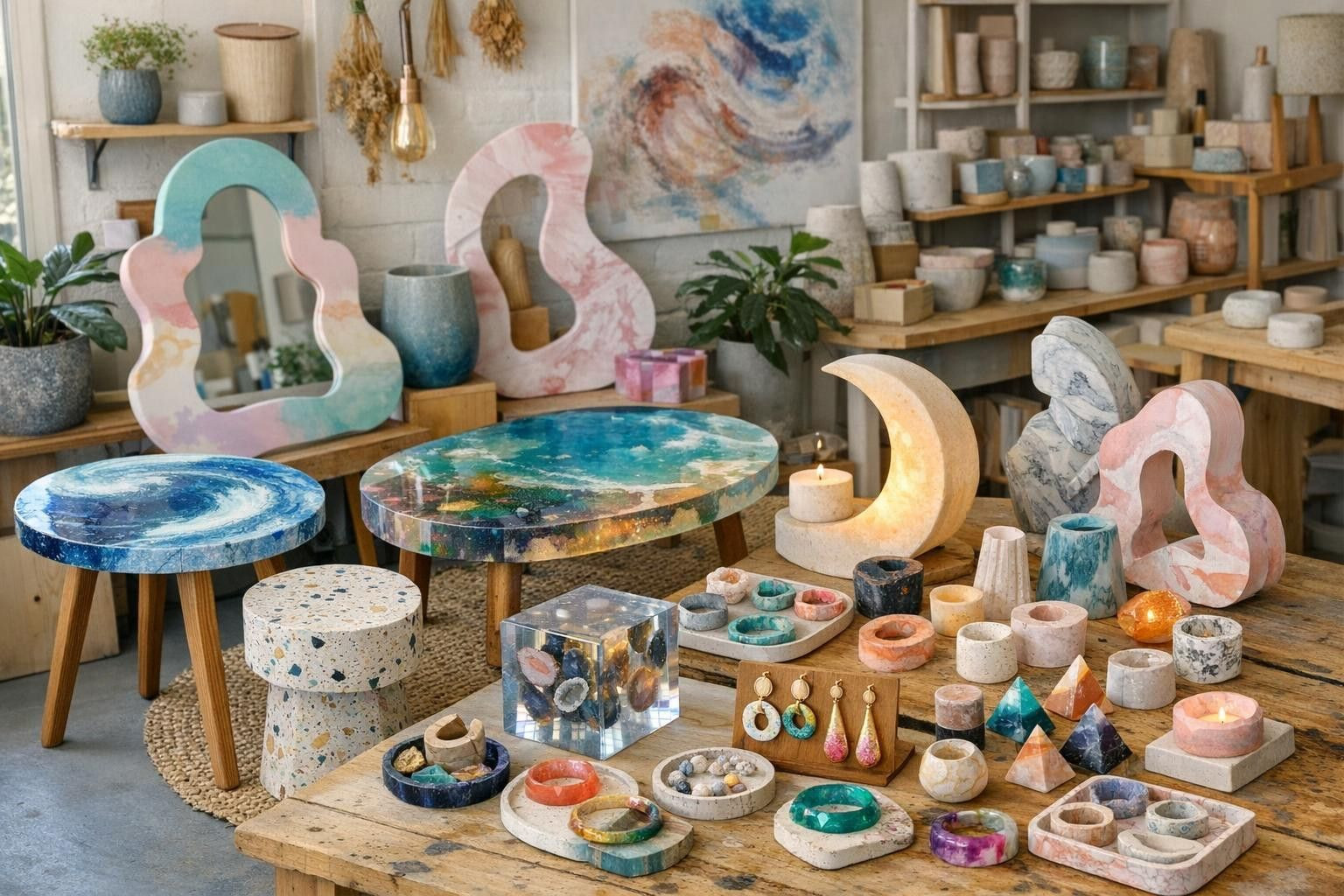 Meie ettevõtte tuum on käsitöö ja materjalide võimaluste ühendamine: töötame epoksiidi ja jesmoniidiga, et luua nii kasutus- kui kunstiesemeid, mis püsivad kenad ja funktsionaalsed aastate vältel.