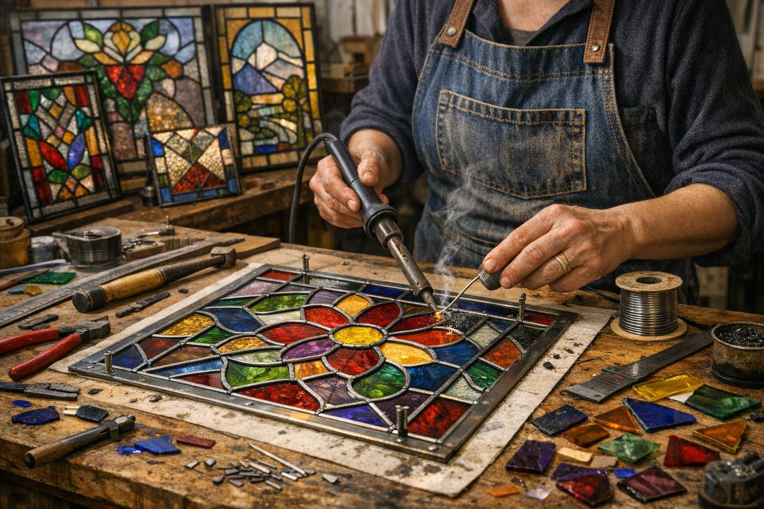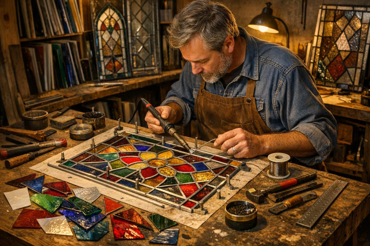 Tellisin vana vitraaži restaureerimise; klaasitööd ja jootmine tehti hoolikalt. Detailid on hästi taastatud ja tükk sobib taas paigaldamiseks.