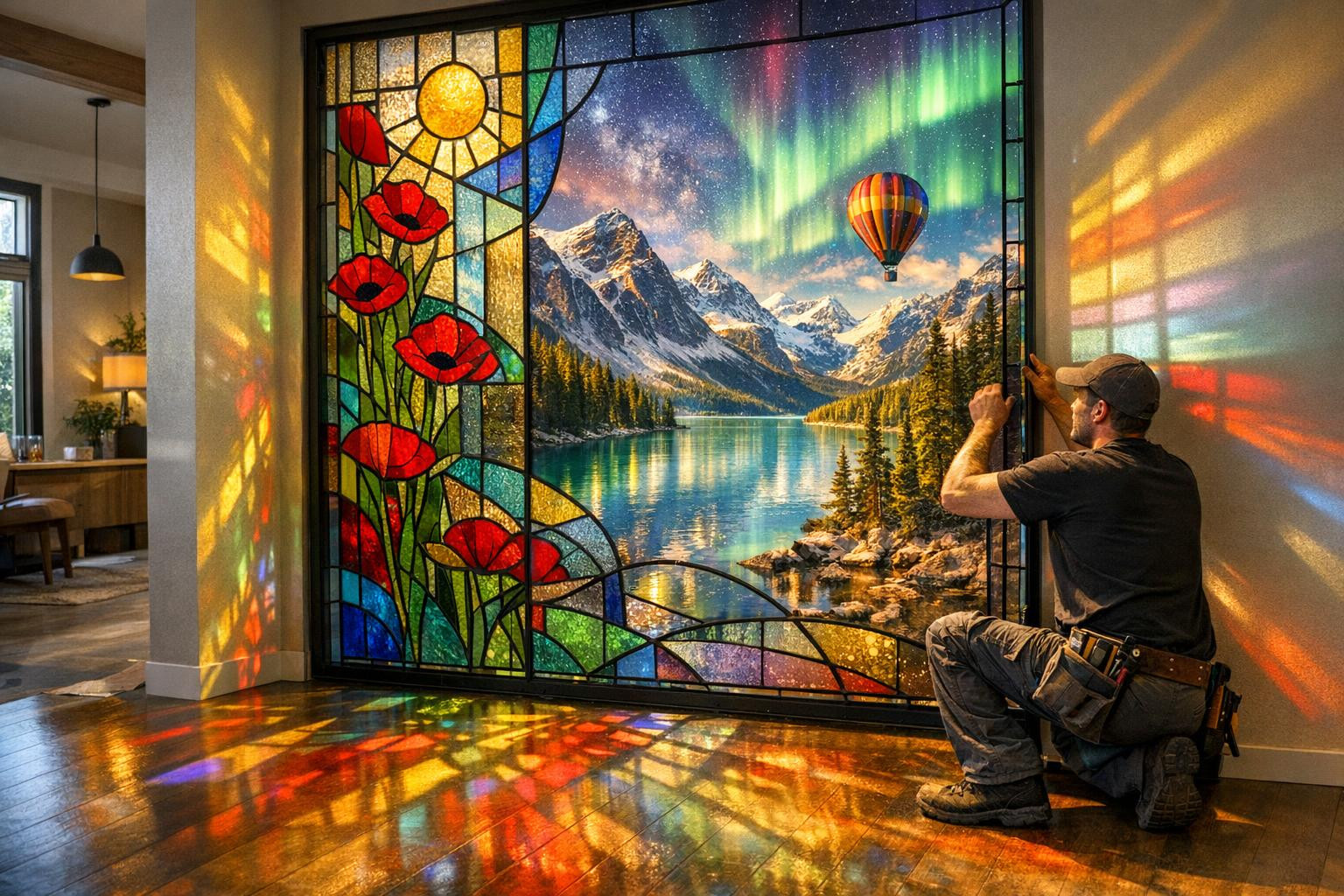 Tellisin kohandatud vitraažipaneeli elutoa aknale. Disain järgiti täpselt ja paigaldus sujus ladusalt.