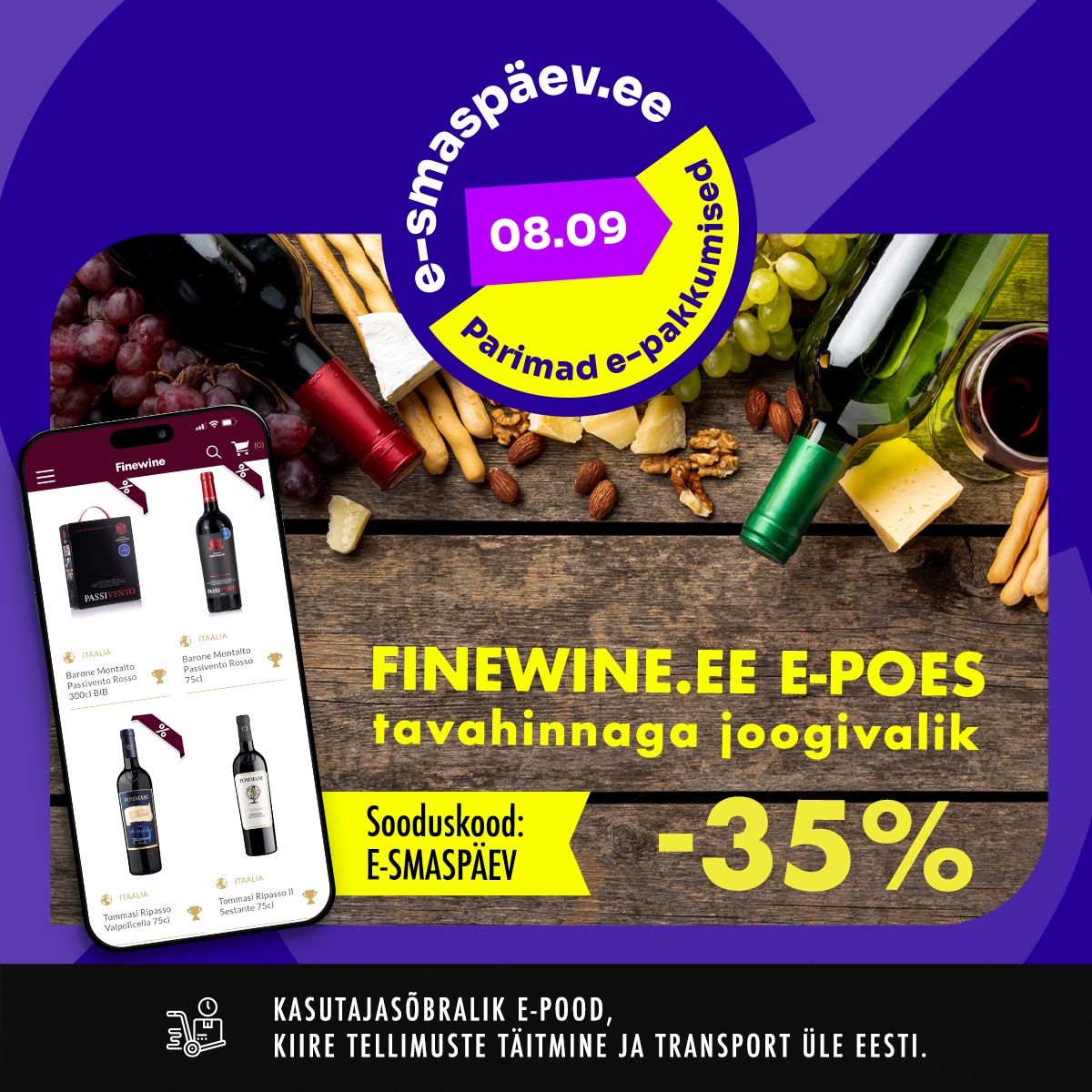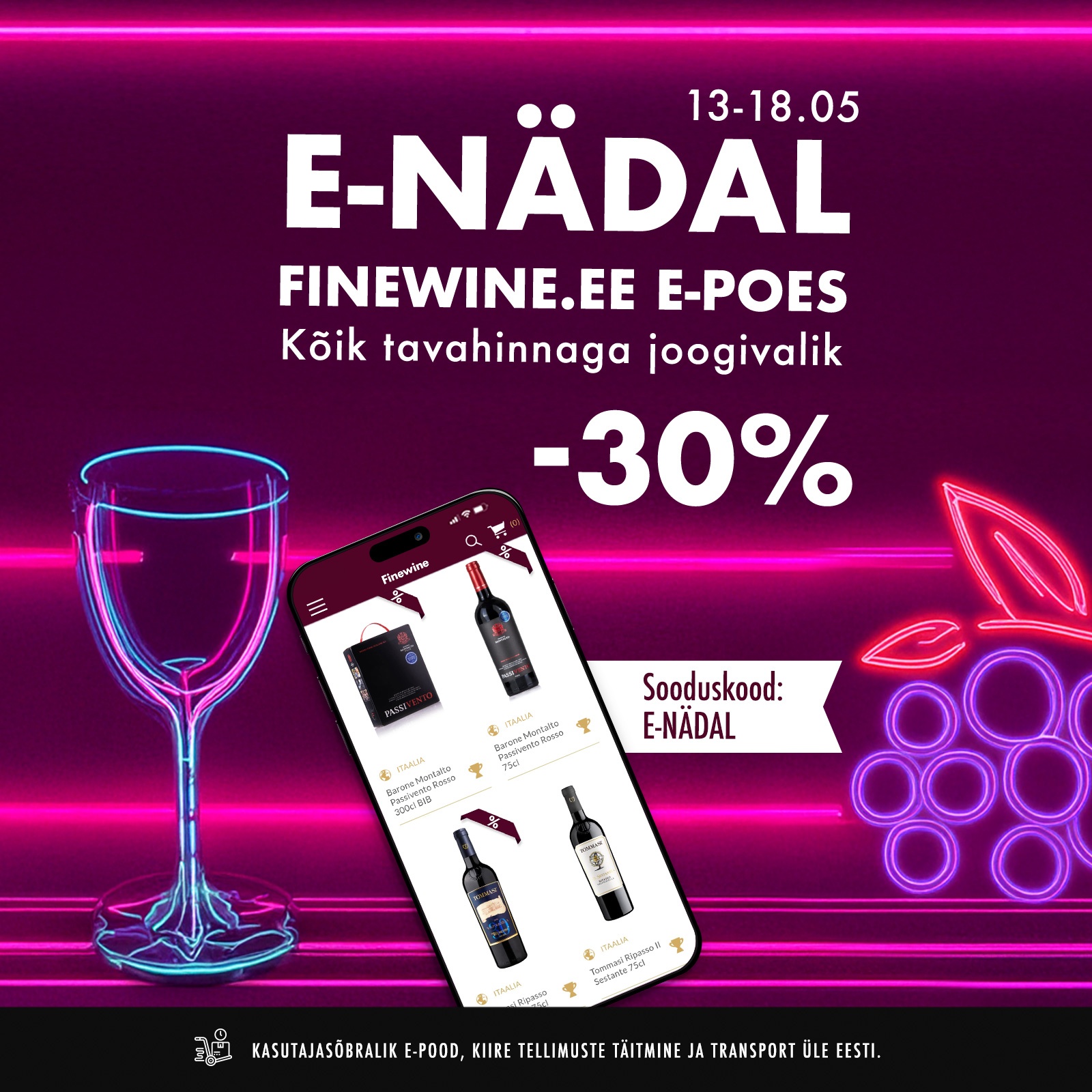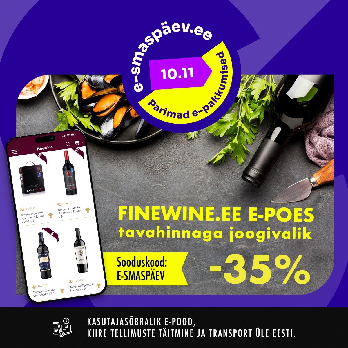 Tellisin Finewine'i veebipoest kingipaki — tellimine oli lihtne ja kohaletoimetus kiire ning valik tundus mitmekesine.