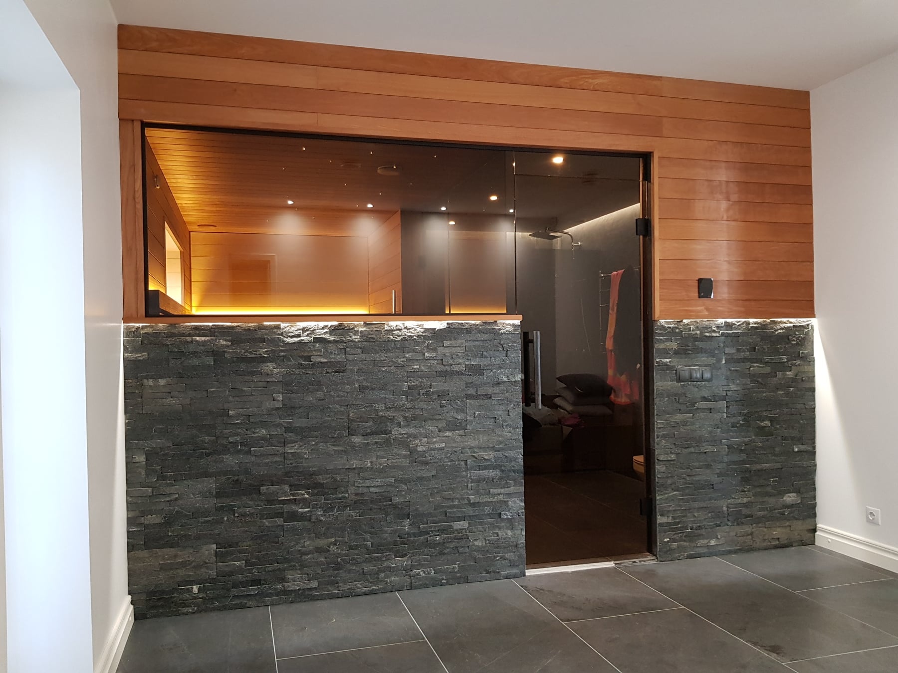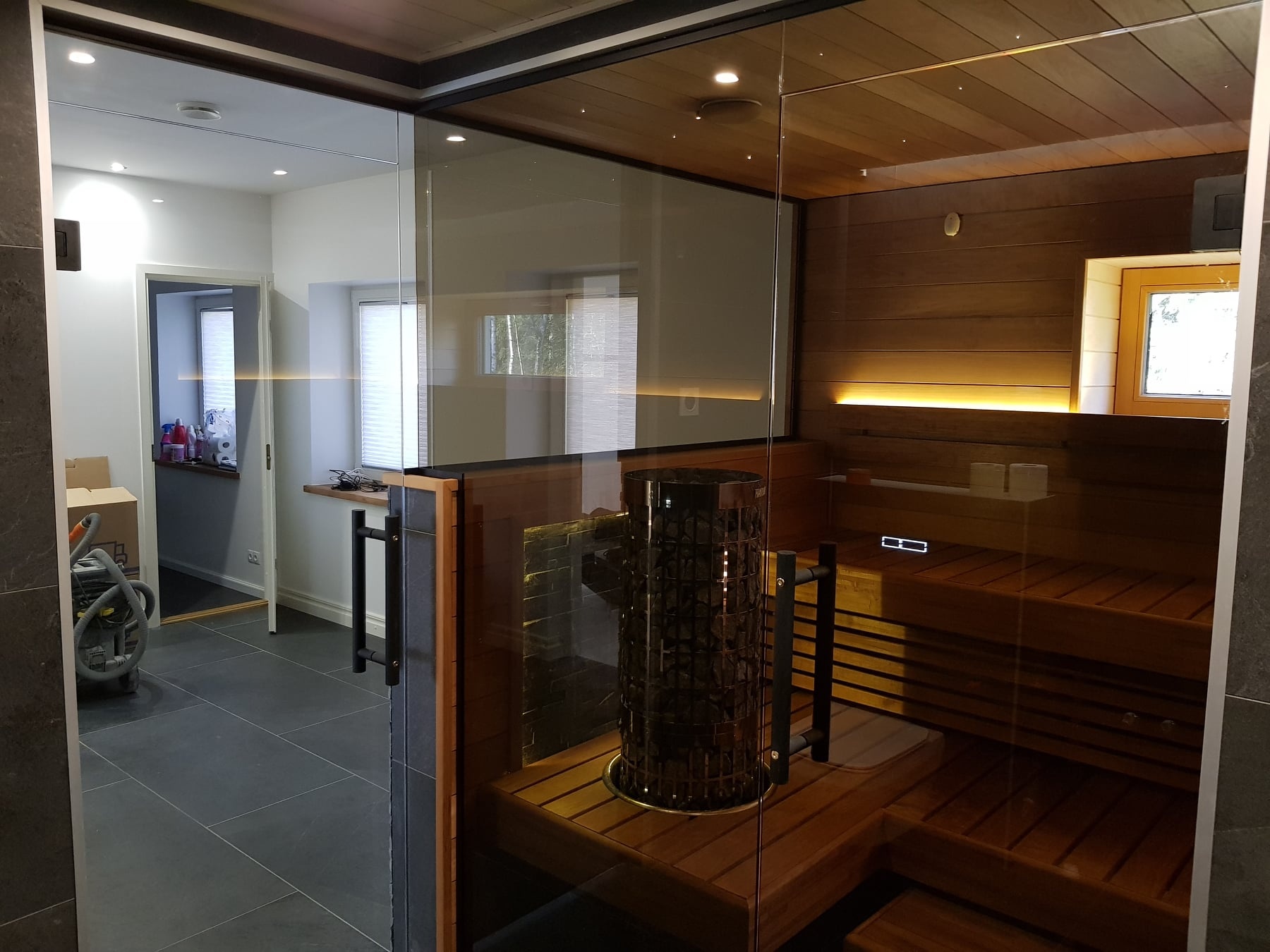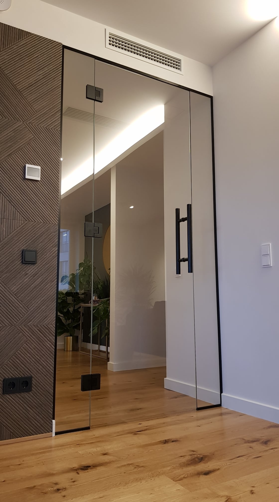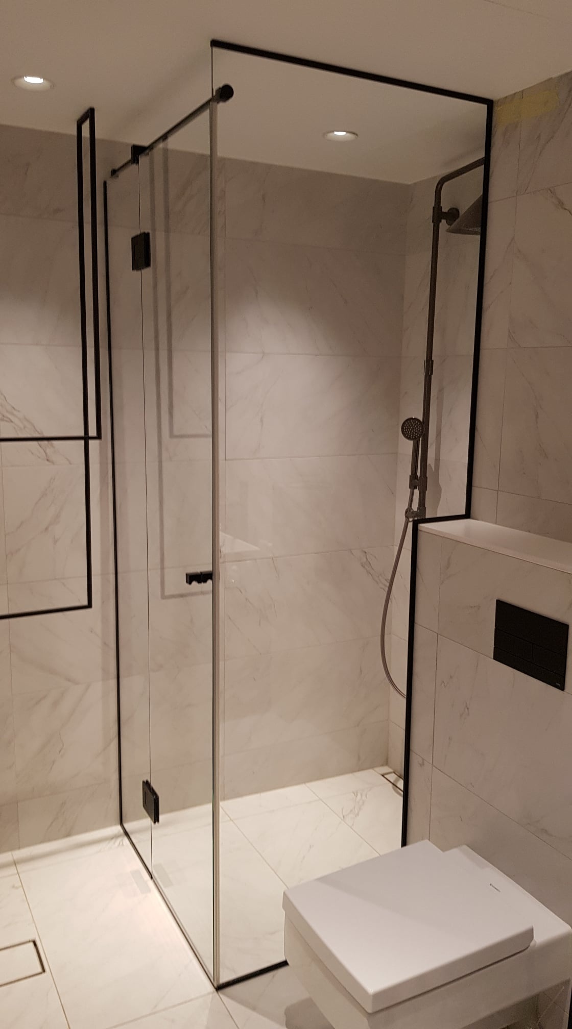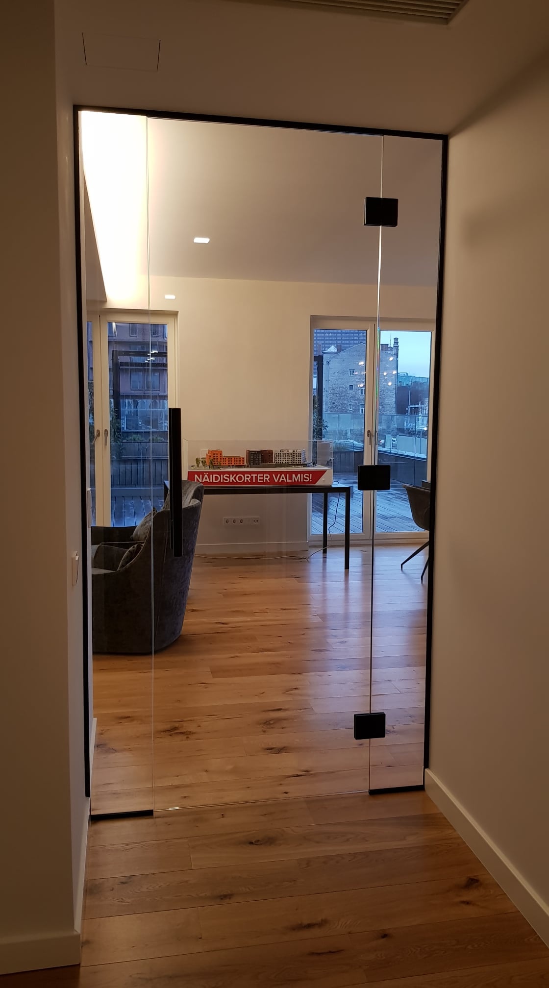 Eritellimusel klaasuksed ja klaassein sobitusid täpselt, paigaldus oli professionaalne ning viimistlus annab ruumile elegantse ja praktilise lahenduse.