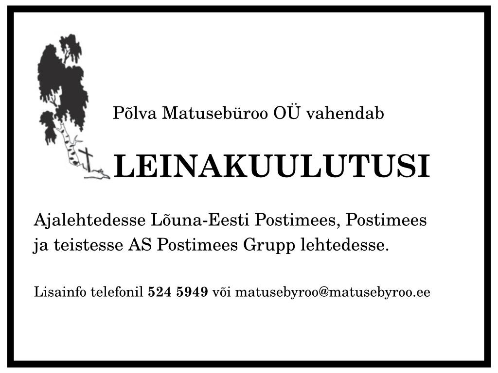 PÕLVA MATUSEBÜROO OÜ contacts