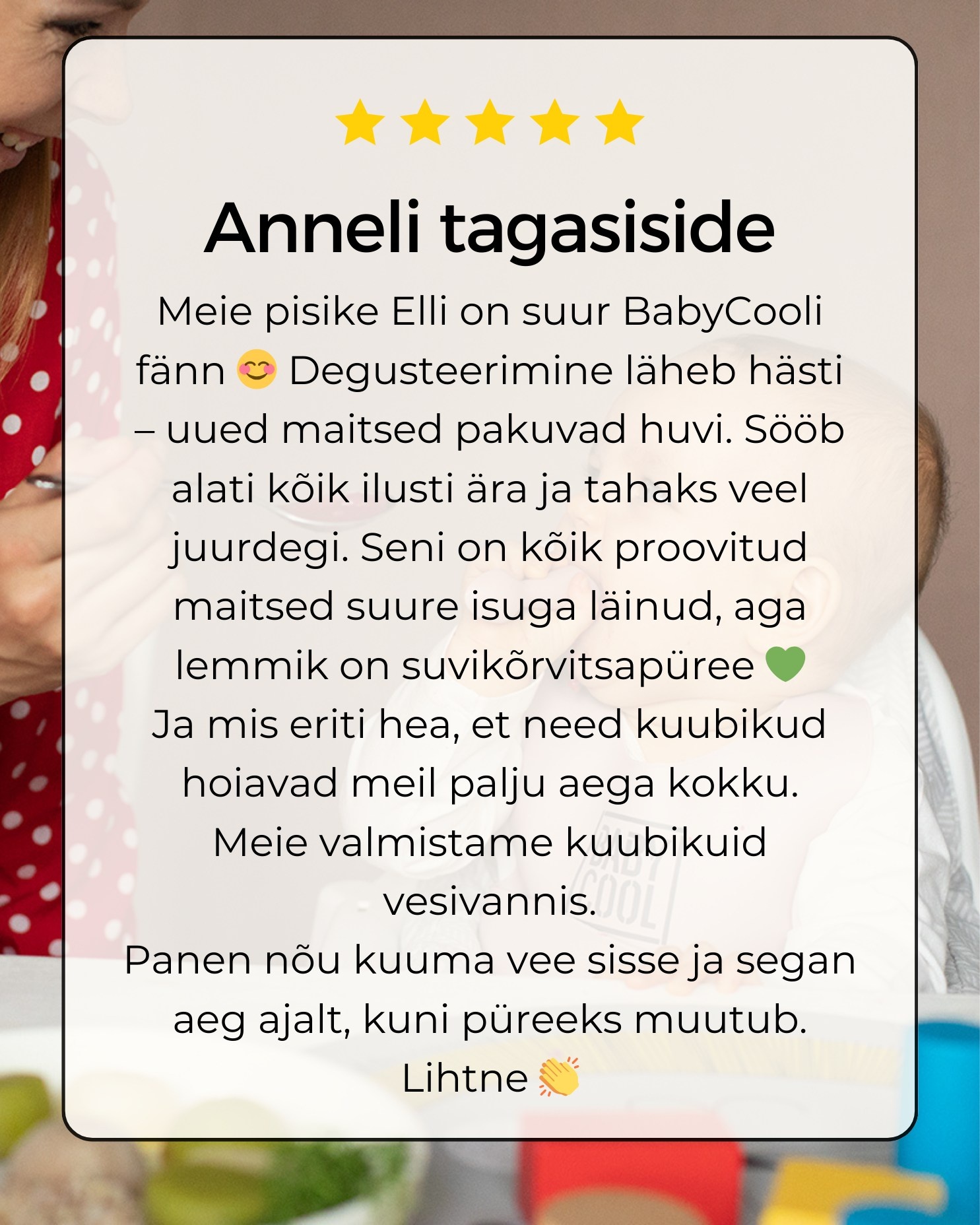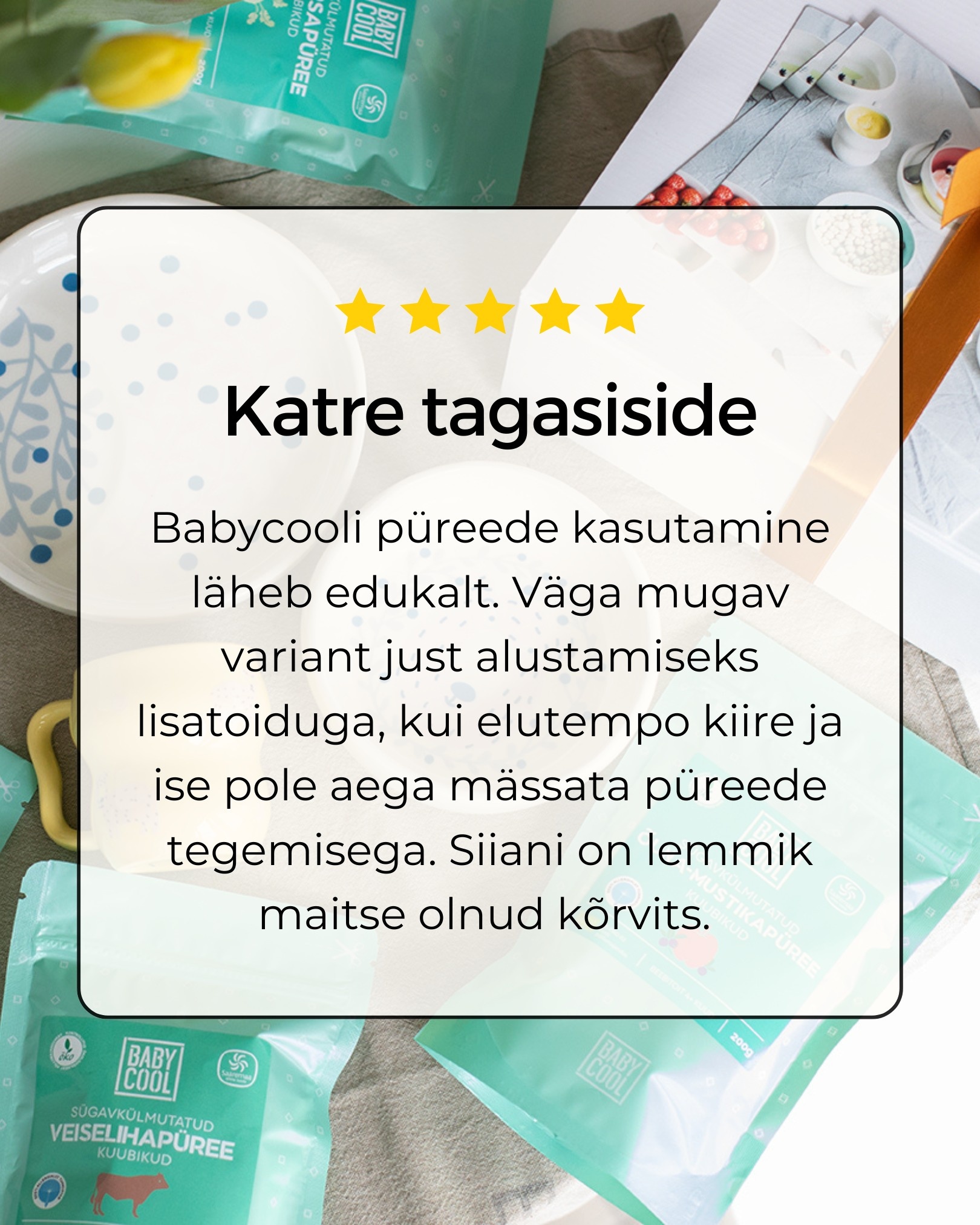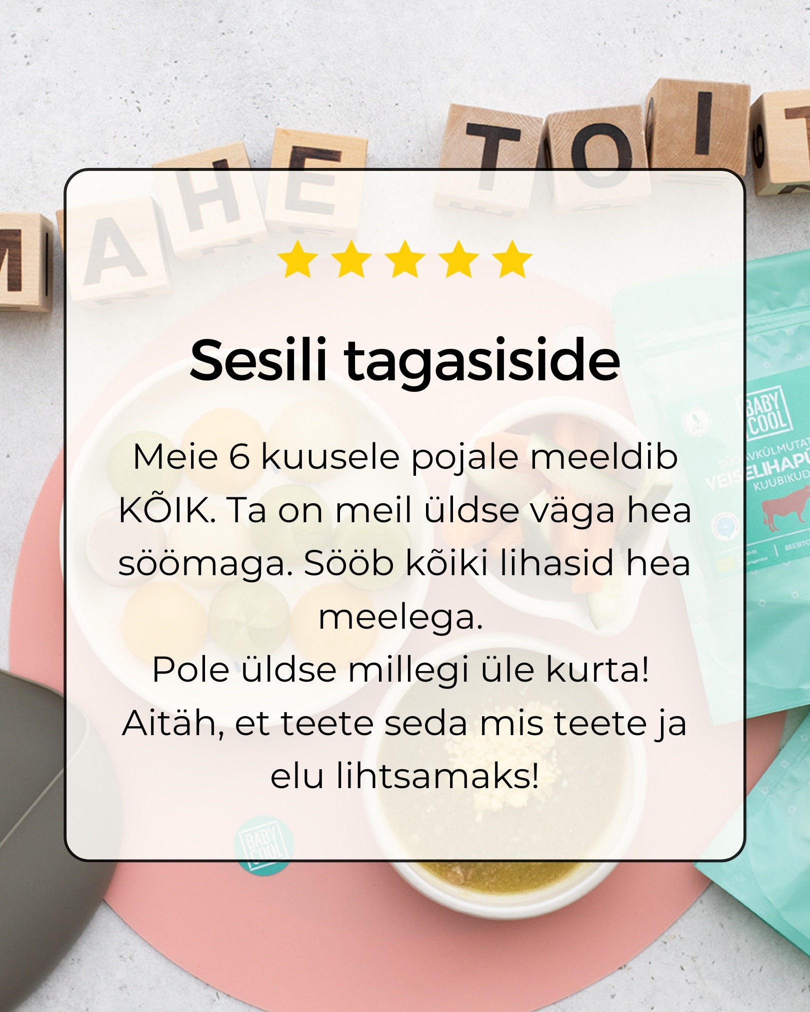 Ostsin portsjonikuubikuid veebipoest — sulavad kiiresti ja ühe koostisosaga püreed teevad lapse toidutegemise väga lihtsaks. Hindan, et kõik on 100% mahedad ja ilma lisaaineteta.