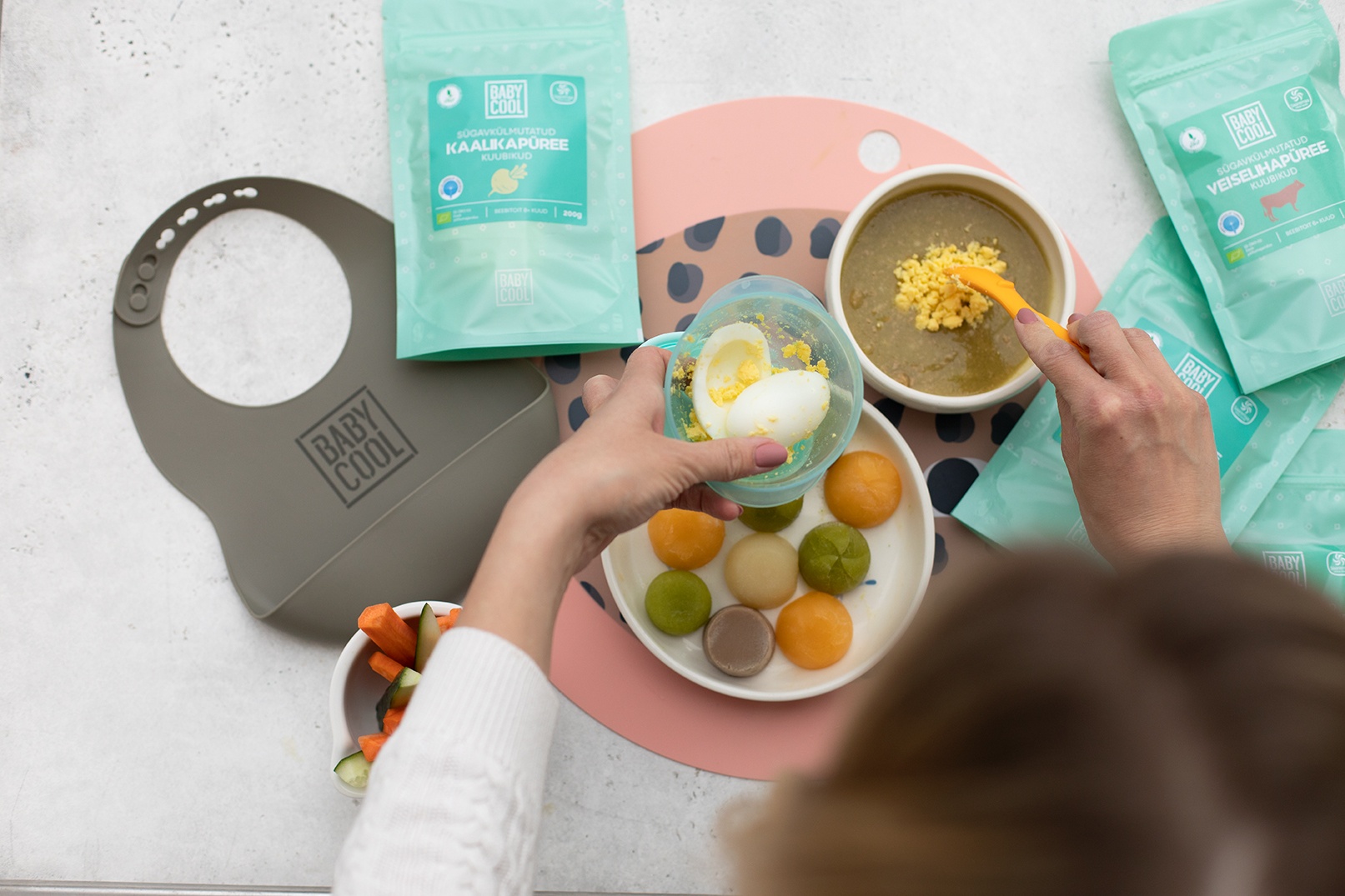 We make portions of frozen purées from individual ingredients and are certified to be organic and without any additional additives. In addition, we offer ready-made kits and convenient shopping channels to make it easy for parents to try and combine suitable flavours according to the needs of the child.