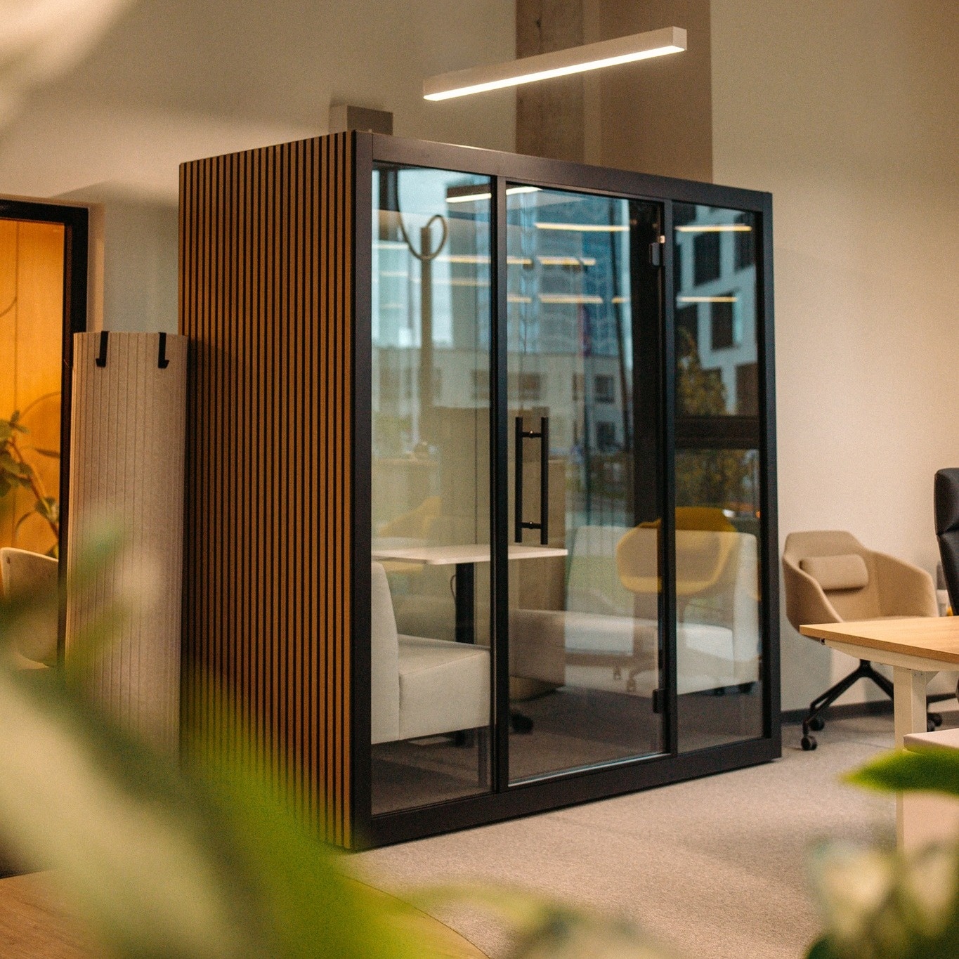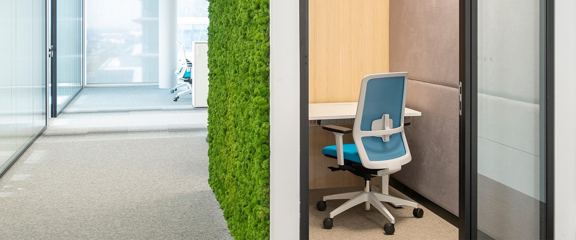 Paigaldasime akustilise boksiga privaatse töökoha ning kohandatud lauaraamid; müra on vähenenud ja keskendumine paranenud.
