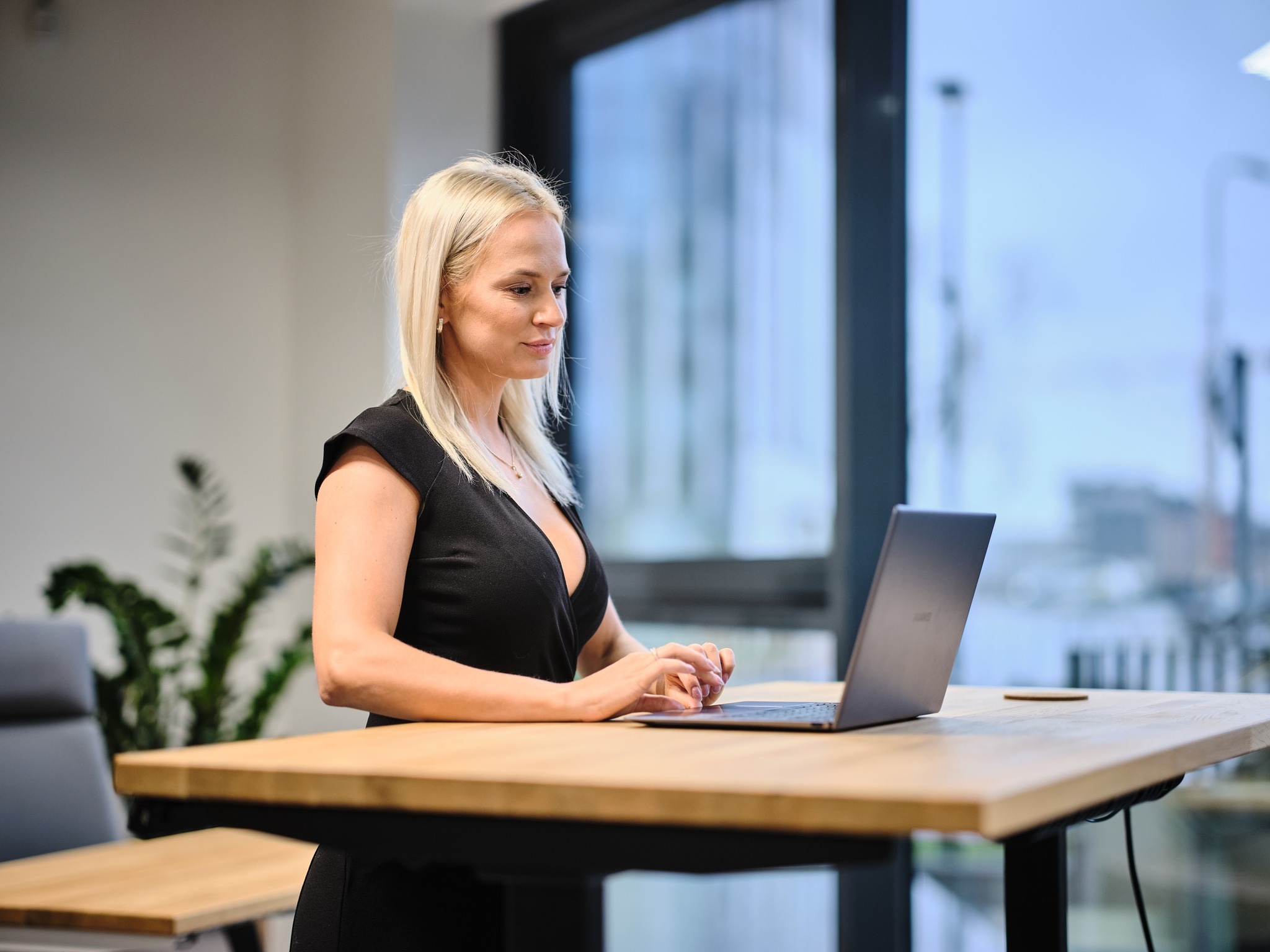 Valisin elektrilise reguleeritava laua, mis võimaldab mugavalt istuvalt seisvale vahetada — sobib hästi nii kontorisse kui kodukontorisse.