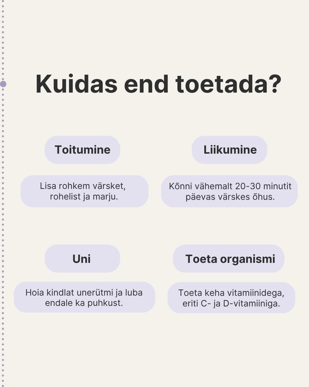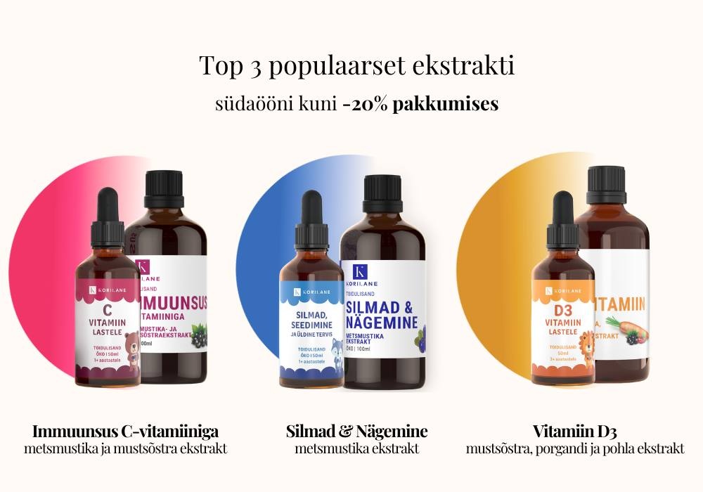 Meeldib, et immuuniekstraktid põhinevad Saaremaa marjaekstraktidel ja on laboritestitud; kasutasin toodet hooajalise väsimuse ajal ning märkasin väikest toetust immuunsusele. Toote maitse on naturaalne ja ei tekitanud kõhuhäireid.