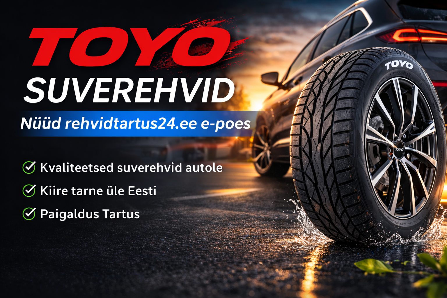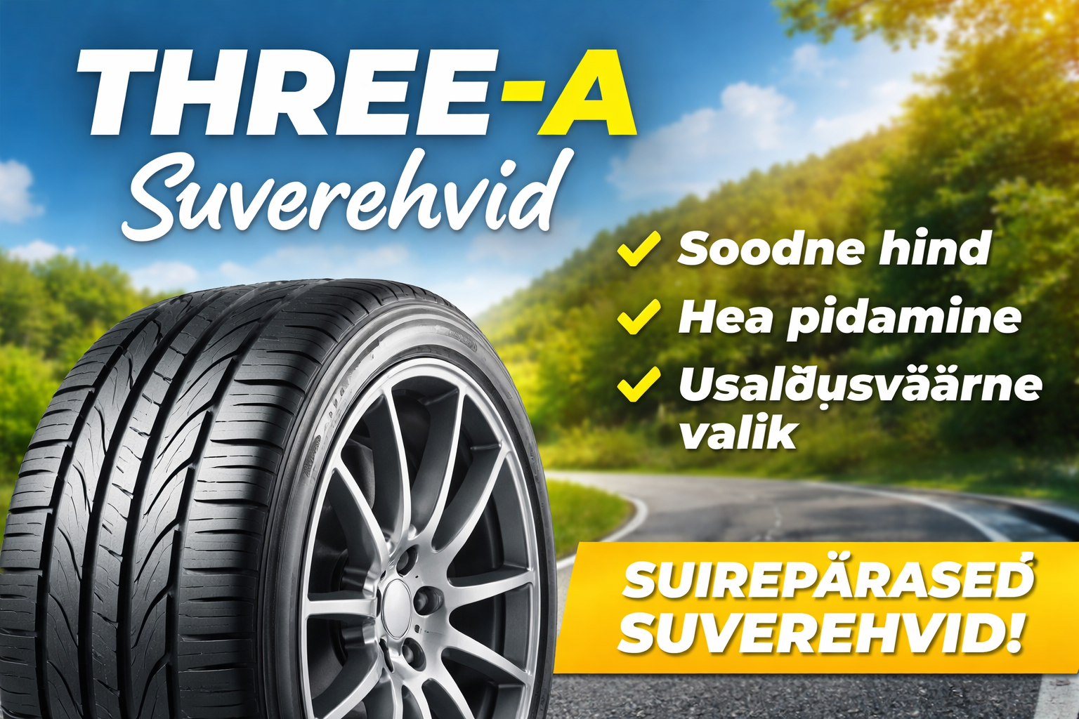 Leidsin e‑poest kiiresti õige rehvimõõdu ja tellisin kohapealse paigalduse Tartus; kogu protsess oli selge ja mugav.