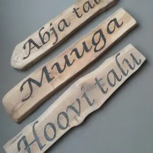Valisin talule puidust sildi välitingimustesse sobiva viimistlusega — silt tundub vastupidav ja graveering on selge. Pakutud graveerimis- ja viimistlusvalikud aitasid leida sobiva lahenduse.