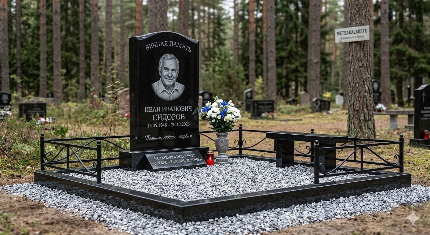 Используем только качественный гранит, устойчивый к морозу, влаге и перепадам температур Эстонии. Конструкция надёжная, монтаж выполняется с подготовкой основания — без перекосов и проседаний.